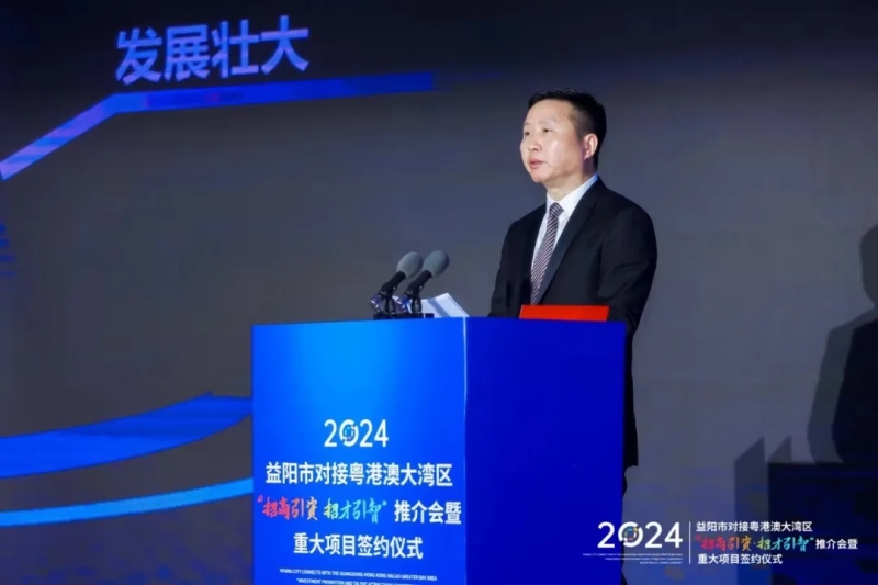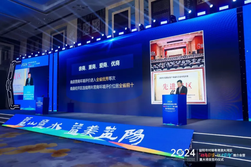 3月30日下午,2024年益阳市对接粤港澳大湾区“招商引资·招才引智”推介会暨重大项目签约仪式在深圳举行。市人民政府副市长、南县县委书记罗讯会上作招商推介。