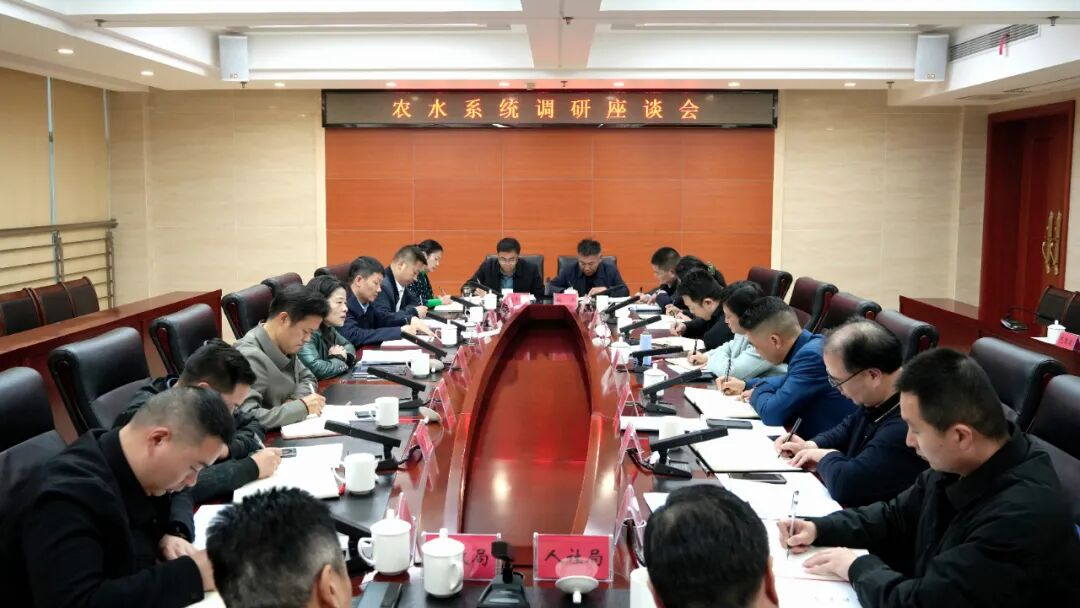 1月15日,县委书记钟剑波主持召开农水系统调研座谈会。县委副书记、县长沈小星,县委副书记、统战部部长詹宇祥等出席会议。