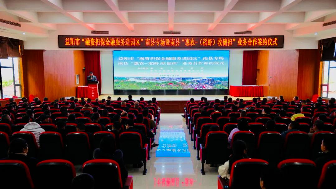 ▲2025年3月6日,益阳市“融资担保金融服务进园区”南县专场暨南县“惠农-(稻虾)收储担”业务合作签约仪式现场。(图源:南县人民政府网站)