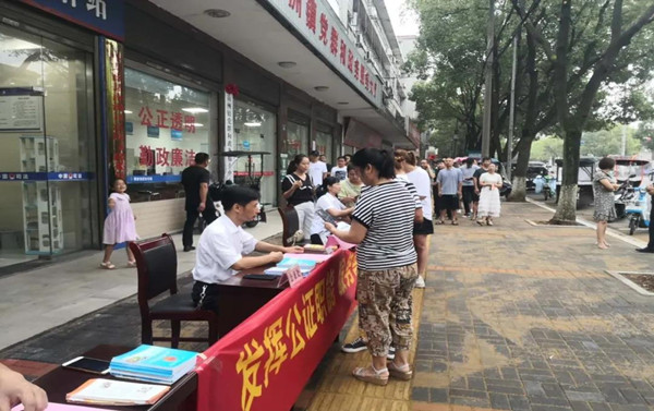 8月21日,南县公证处在城区开展纪念《中华人民共和国公证法》颁布15周年宣传活动。