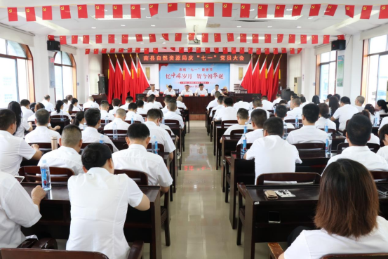 6月30日,南县自然资源局召开全体干部职工大会,重温入党誓词,牢记初心使命,隆重庆祝建党102周年华诞。