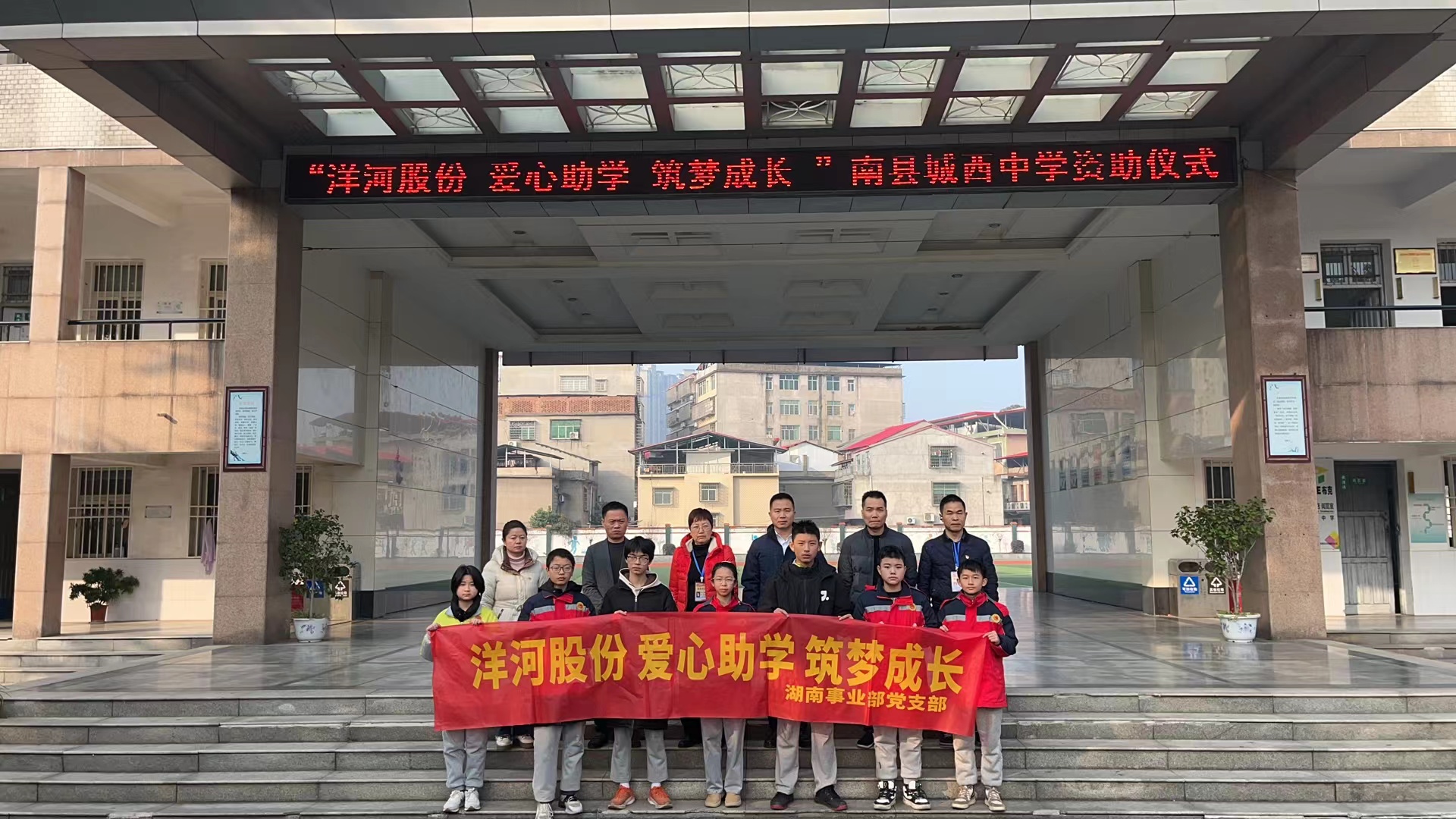 近日,洋河股份湖南事业部益阳郊县办事处主任徐悦携梦之蓝代理商南县上品南洲总经理付奇国等爱心企业人士到南县城西中学进行了爱心助学活动,凛冬虽至,但社会爱心的春风让整个校园充满温情。