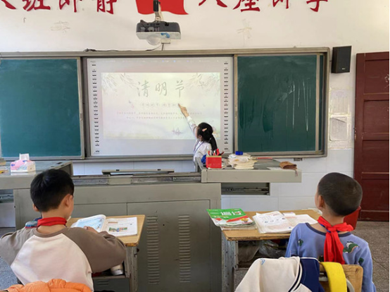 活动中,少先大队首先利用升旗仪式集会,发出《文明祭祀 绿色清明》倡议书,号召全体师生改变旧的祭祀形式,大力提倡遵守法规,文明祭祀。随后各班相继召开主题教育班会,班主任围绕清明节的来历,结合地方清明习俗、文化等内容,加深学生对清明节日的认知,并让学生在潜移默化中了解健康时尚的祭祀方式。然后播放一段小视频。视频中的故事讲述了祭扫者焚烧冥纸冥币燃放鞭炮,从而引发了火灾,不仅造成了人身伤害和财产损失,同时也对环境造成了污染。教育学生,地球是我们赖以生存的共同家园,为了营造干净清新的居住环境,要从我们自己做起,提倡采用鞠躬默哀、敬献鲜花、植树浇水、擦碑扫墓、网上祭扫和召开家庭追思会等文明、节俭、环保、健康的祭祀方式祭奠已故亲人。