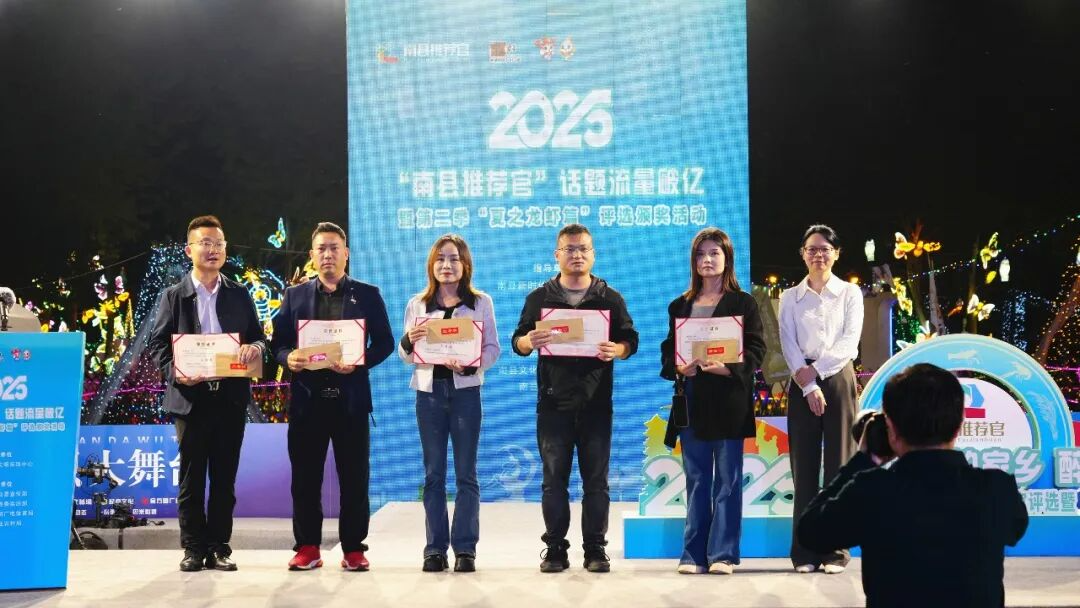 活动在优秀作品及破亿宣传片展播中拉开帷幕。活动现场,一帧帧生动的画面,不仅展现了南县小龙虾的鲜美诱人与乡村产业的蓬勃生机,更凝聚了广大创作者对家乡的深情推介与创意表达。随后,执行单位负责人汇报了“南县推荐官”项目半年度工作开展情况,并现场揭晓了第二季“夏之龙虾篇”的获奖名单。