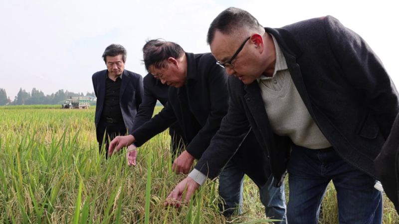 在武圣宫镇沿河堤村的500亩再生稻示范田里,“银龄”农技服务队的专家们蹲在田埂间,弓着身子检查谷粒的饱满度,并在笔记本上细致记录苗情数据。专家们还与种植户深入交流,了解他们在再生稻种植过程中遇到的技术难题和实际需求,结合自身的实践经验提供专业的解答与指导。