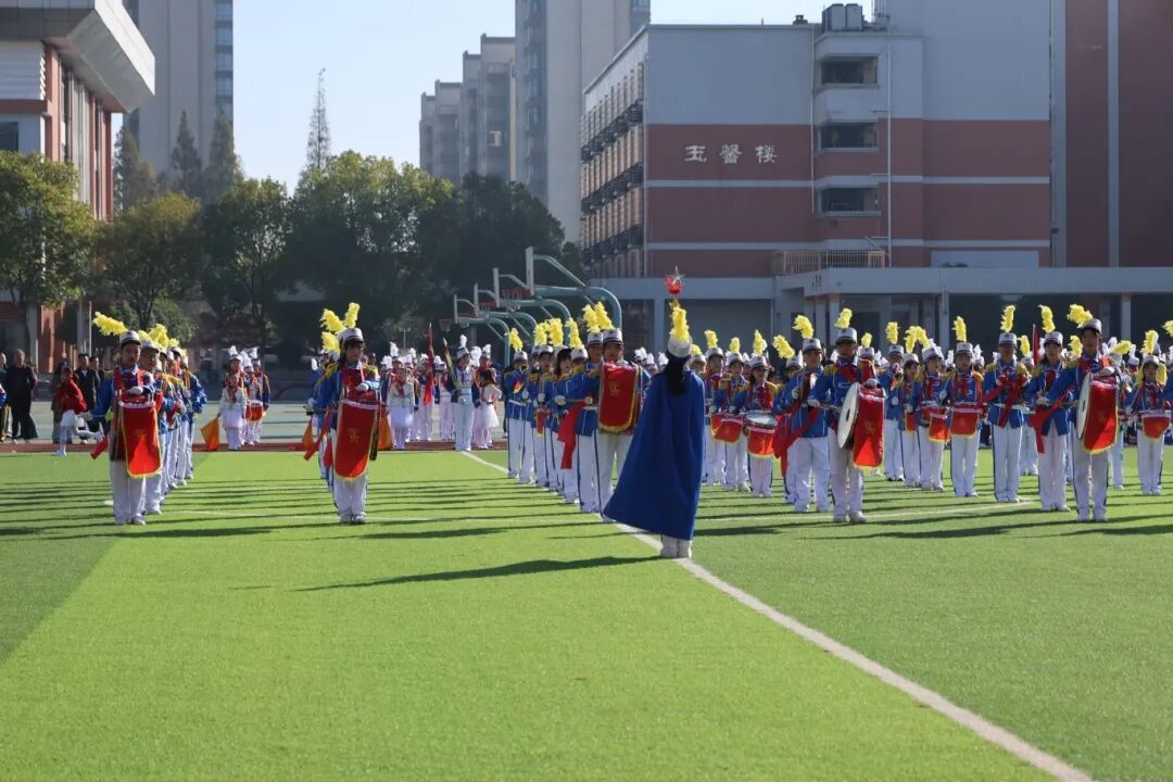 比赛现场,各参赛队伍身穿统一服装,队列整齐、精神昂扬,在音乐指挥的精准引领下,雄壮的号角声、清晰的鼓点声、协调的镲音与富有创意的队形变换完美融合,将整个赛场化为风采与活力竞相绽放的舞台。