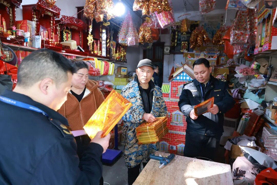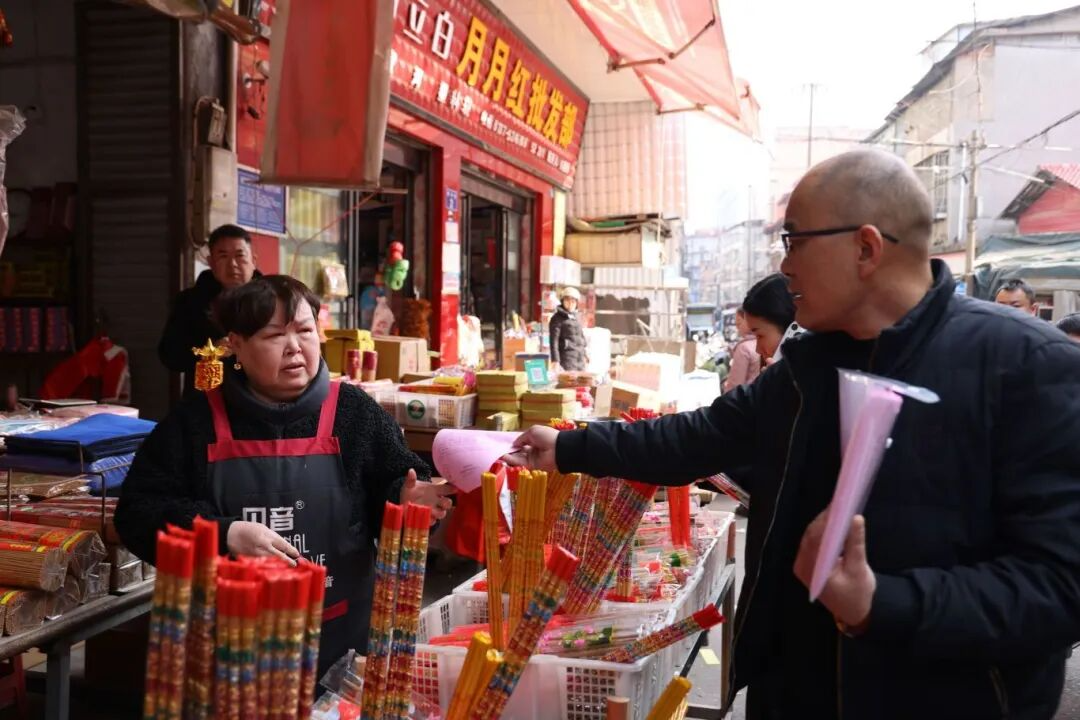 在西河街、九都山路等重点区域,工作人员深入沿街商超、杂货店、殡葬用品店等经营场所,逐户开展排查与宣传引导工作,并向居民和临街商户发放《元旦春节文明祭祀倡议书》,详细解读禁售封建迷信祭祀用品、禁燃禁放烟花爆竹的相关规定,引导群众自觉践行文明祭扫理念。