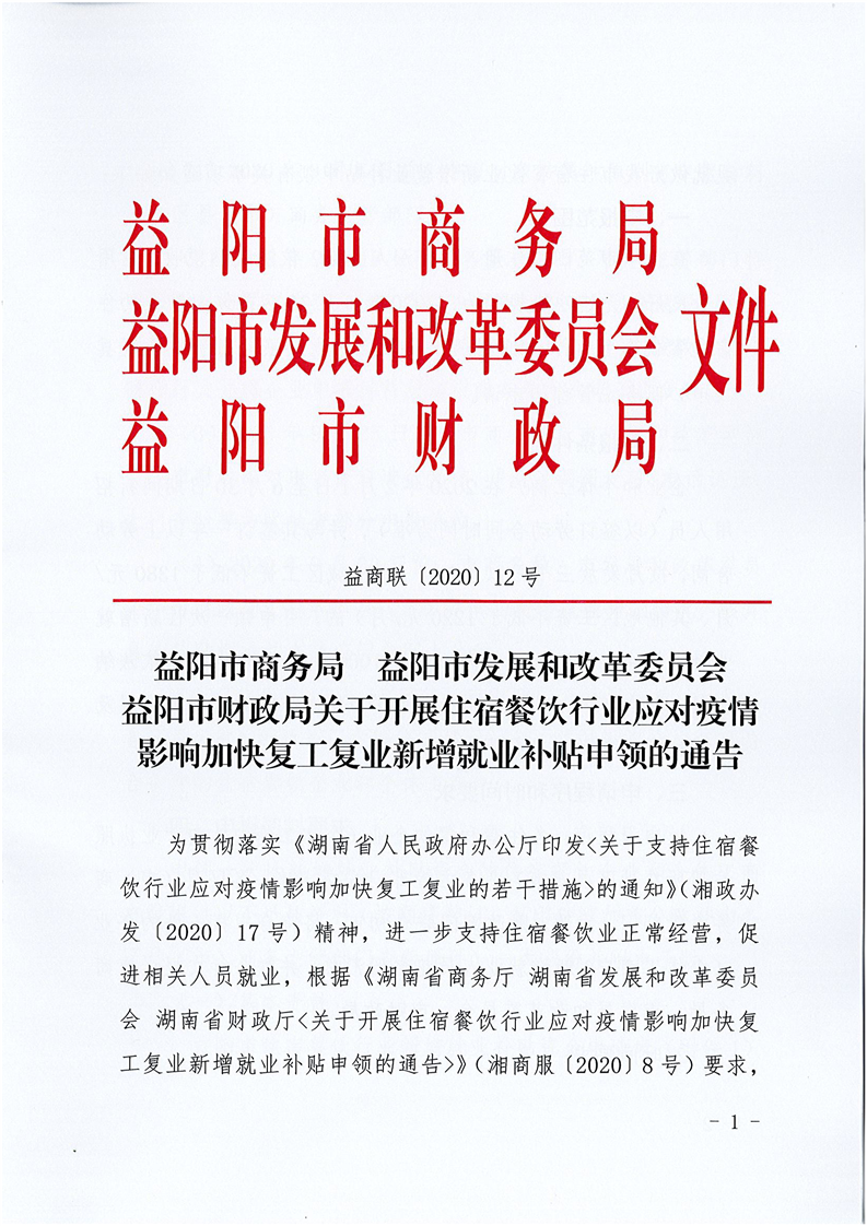 关于开展住宿餐饮行业应对疫情影响加快复工复业新增就业补贴申领的通告