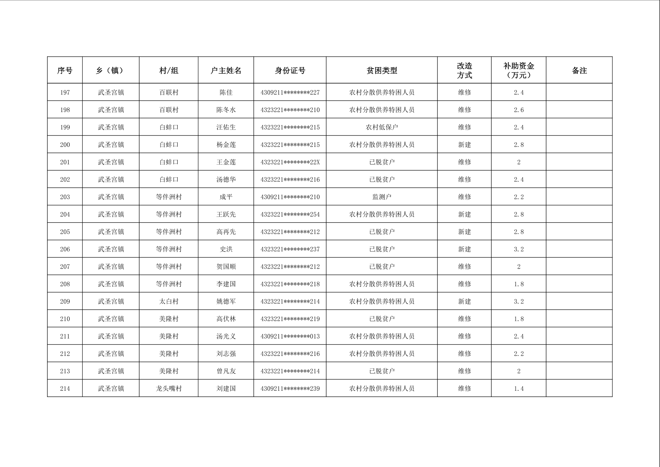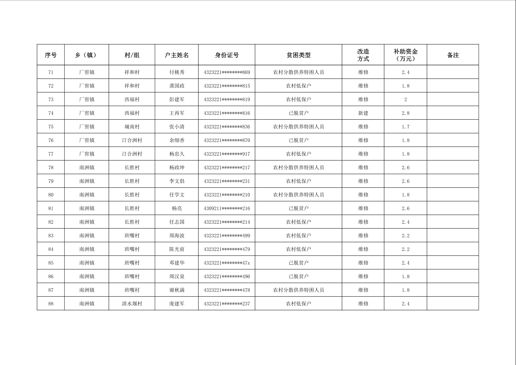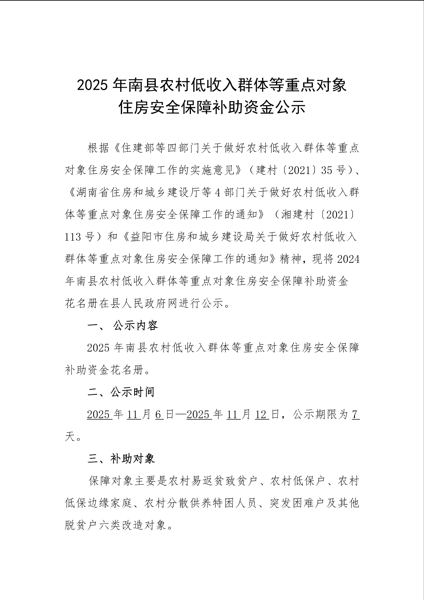 2025年南县农村低收入群体等重点对象住房安全保障补助资金公示