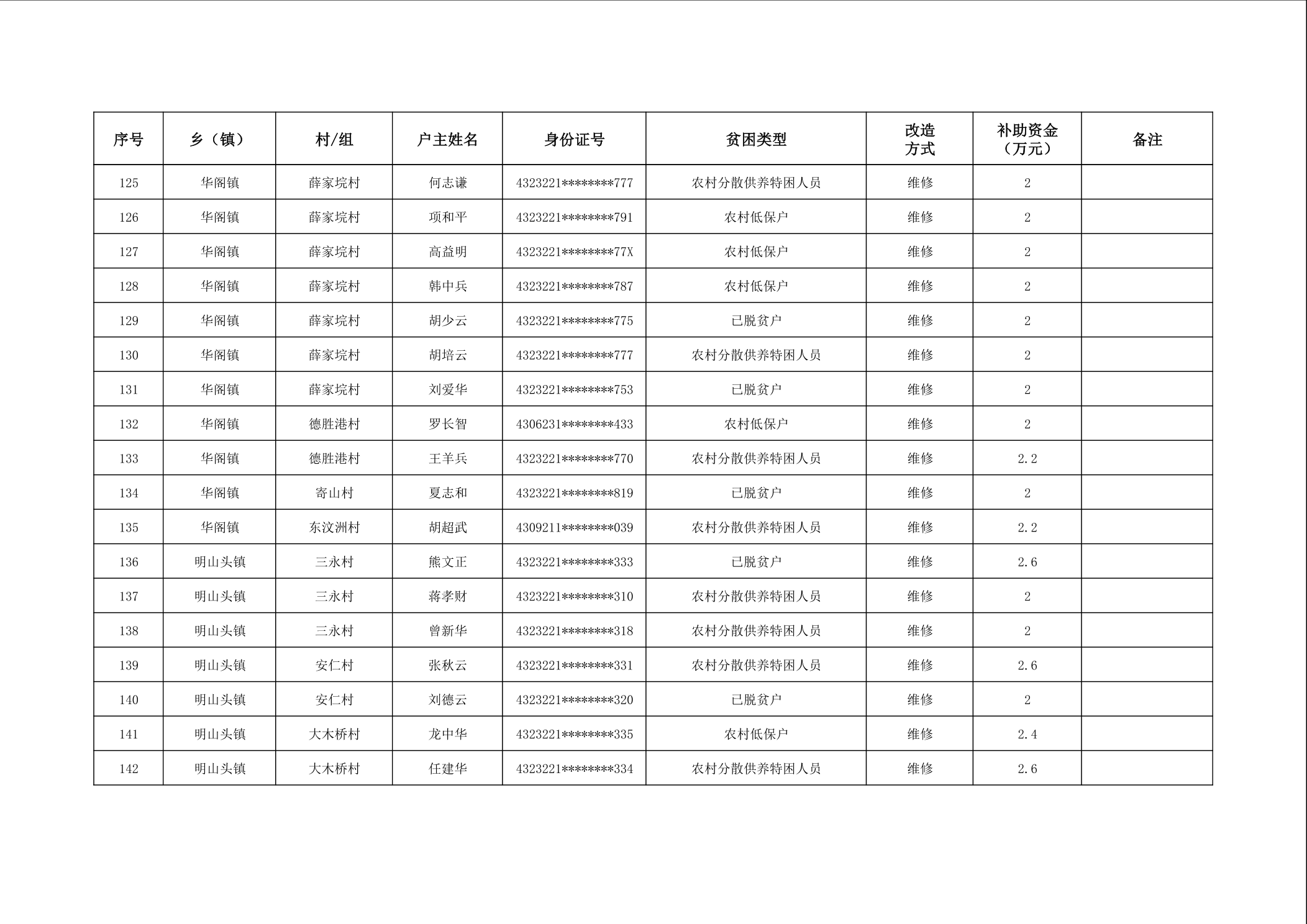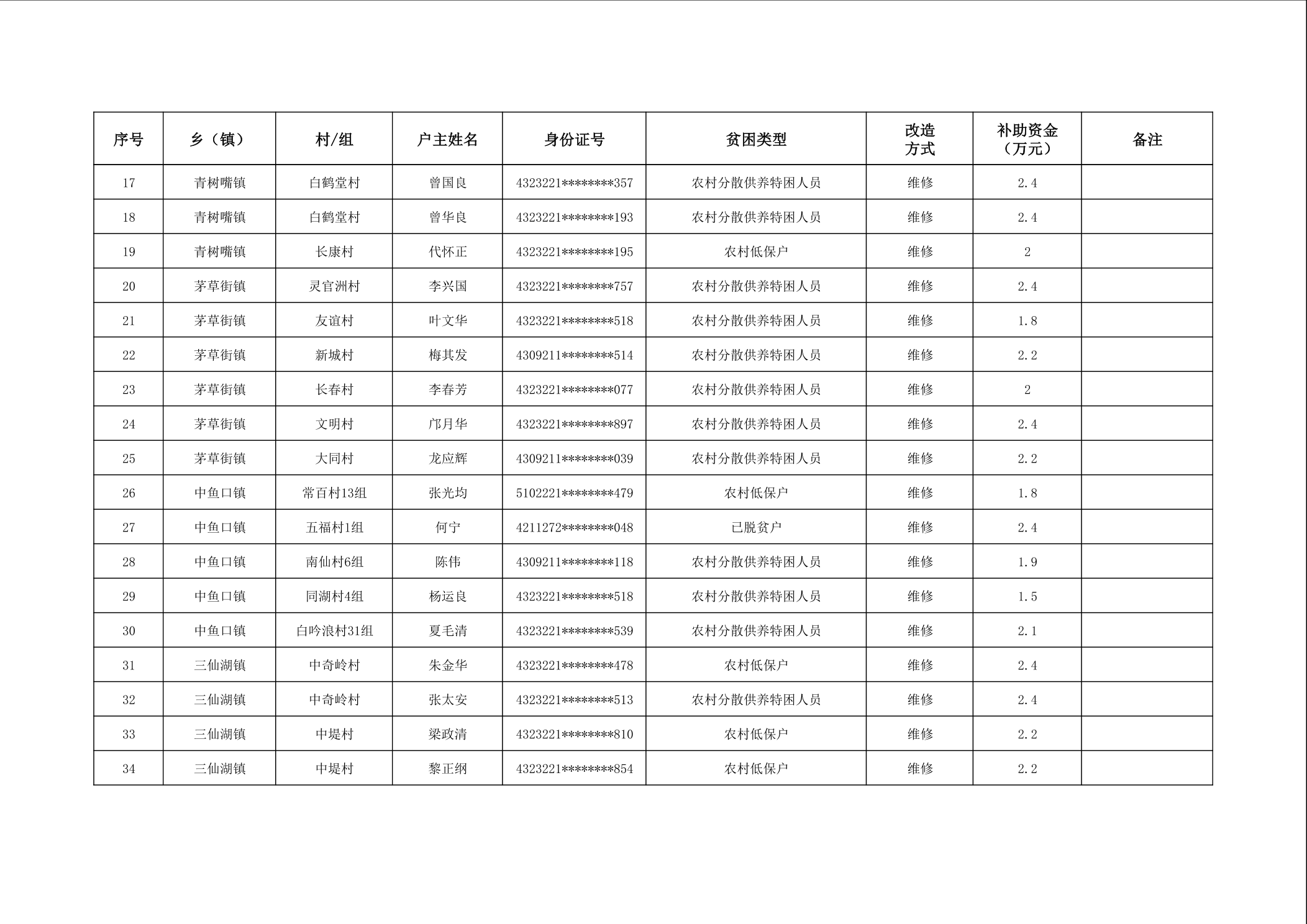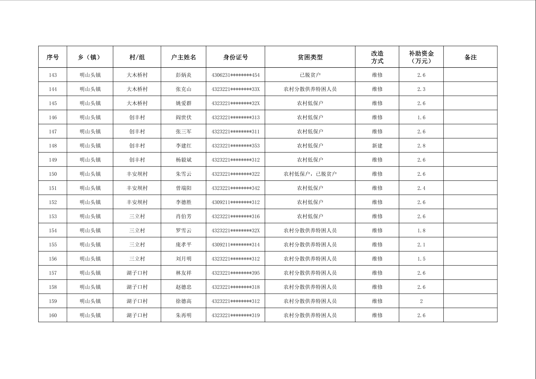 2025年南县农村低收入群体等重点对象住房安全保障补助资金公示