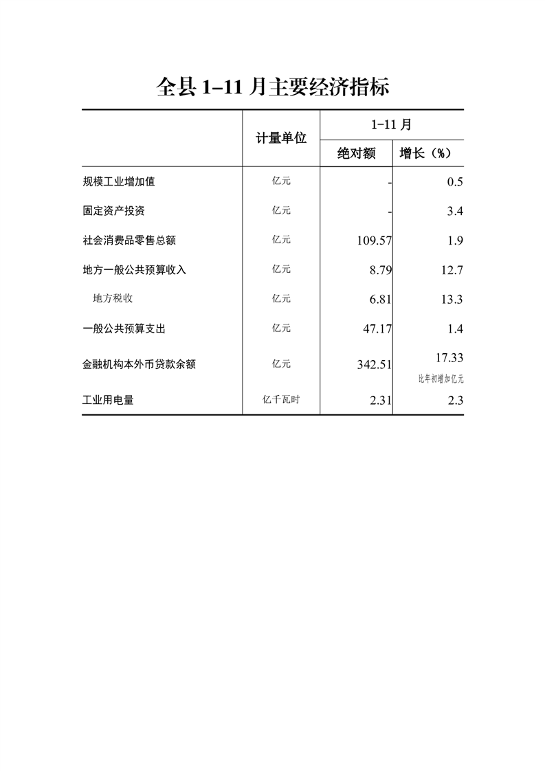 2025年1-11月全县主要经济指标情况