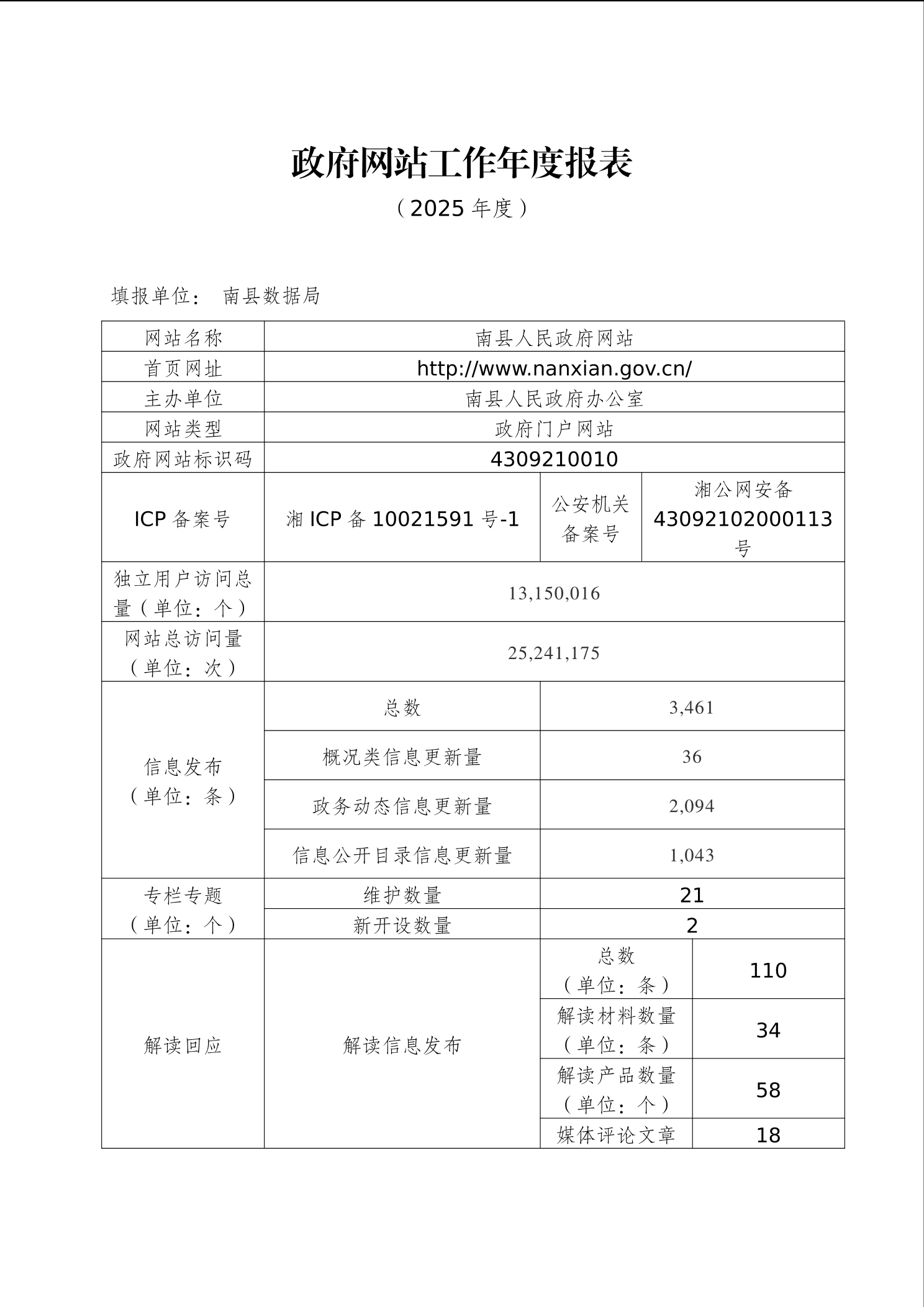 2025年南县政府网站工作年度报表