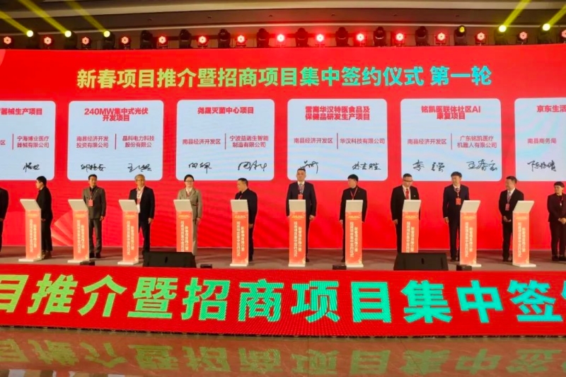 签约仪式上,100MW风电和130MW集中式光伏开发项目、分布式屋顶光伏整县开发项目、2万吨麻地膜研发生产项目、京东生活广场项目、南县罗文花海涂鸦艺术村农旅文体康项目、莱克小龙虾食品加工冷链项目等项目正式签约,其中生物医药、新材料新能源、金融科技等战略性新兴产业累计投资额在40亿元以上,且有2个15亿元项目,这些项目将在南县经济发展多领域建链、强链、补链、延链,为县域高质量发展注入强劲动力。