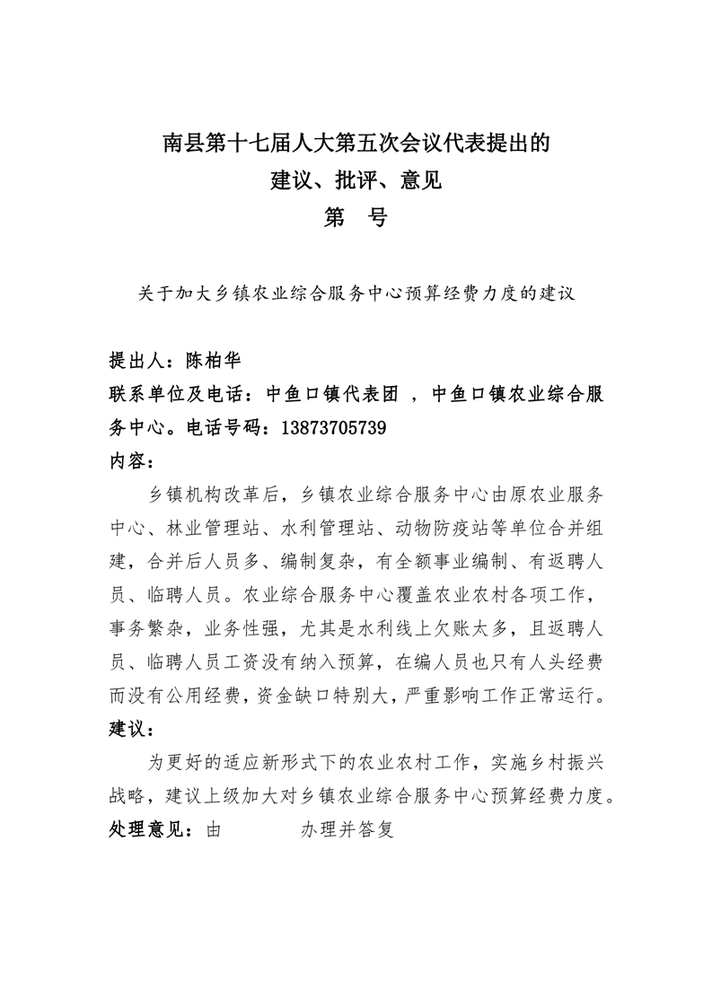 关于加大乡镇农业综合服务中心预算经费力度的建议
