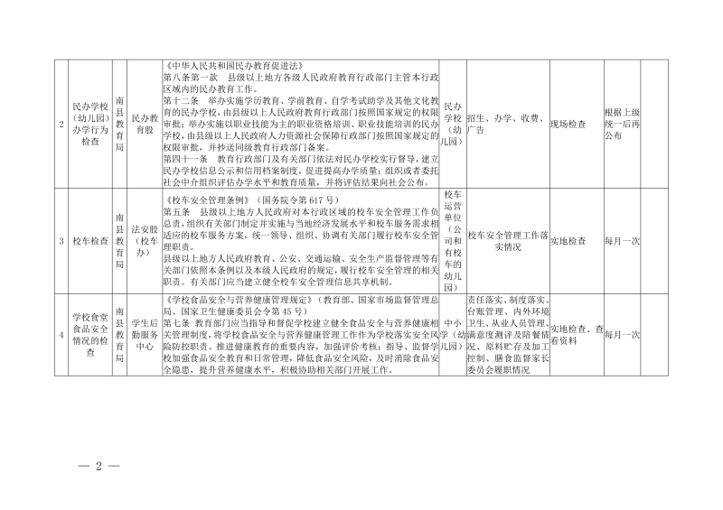 南县教育局涉企行政检查事项清单