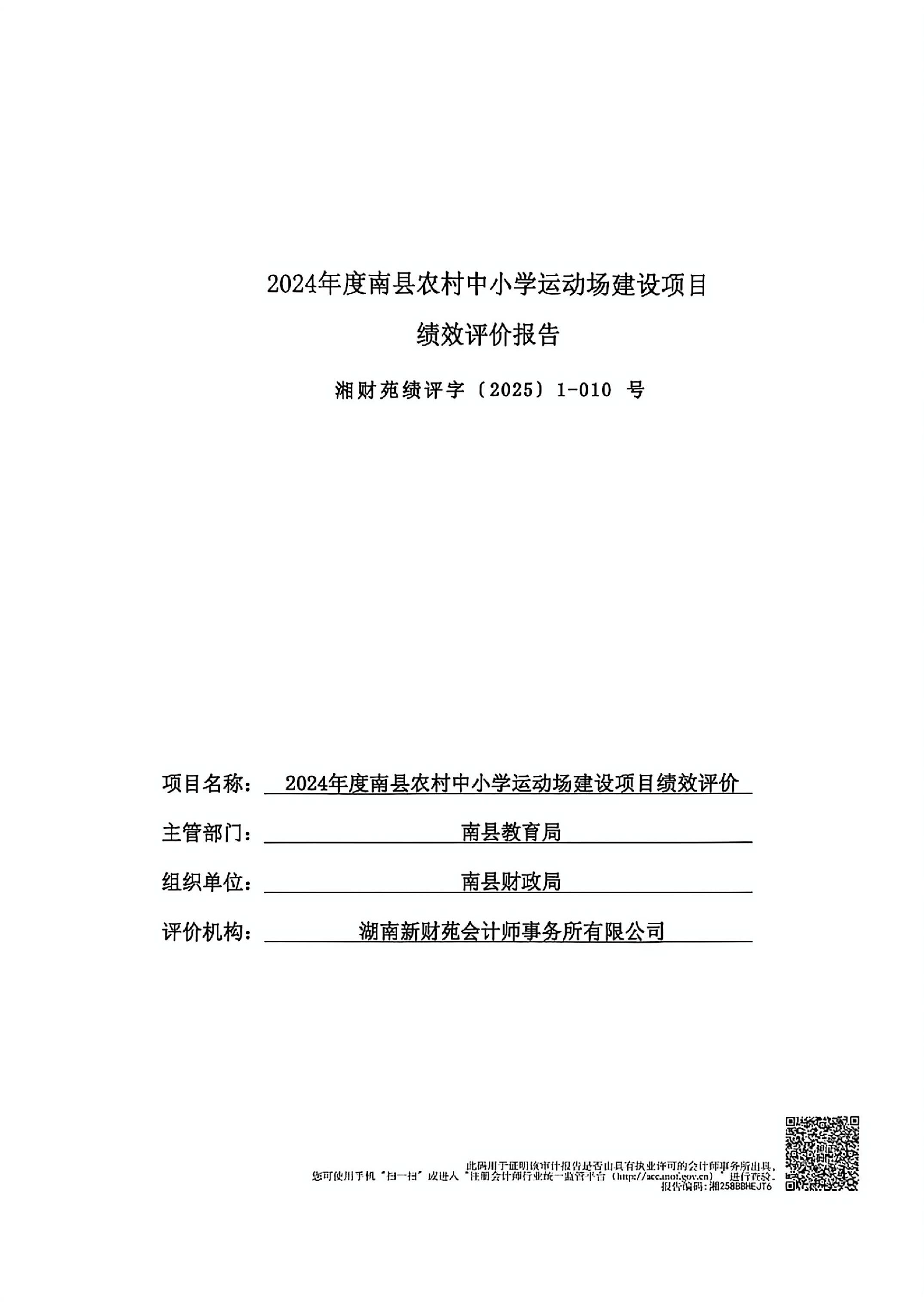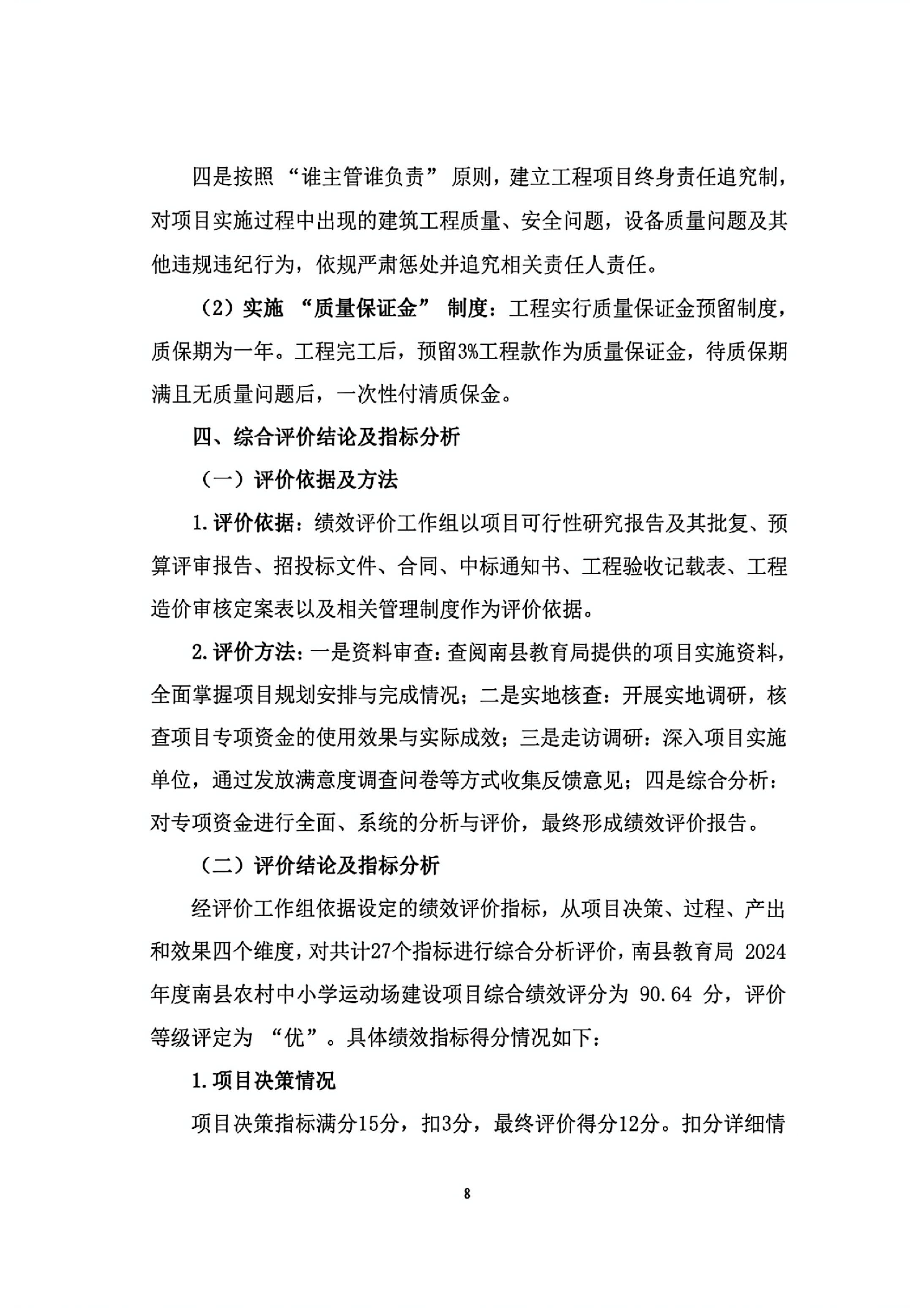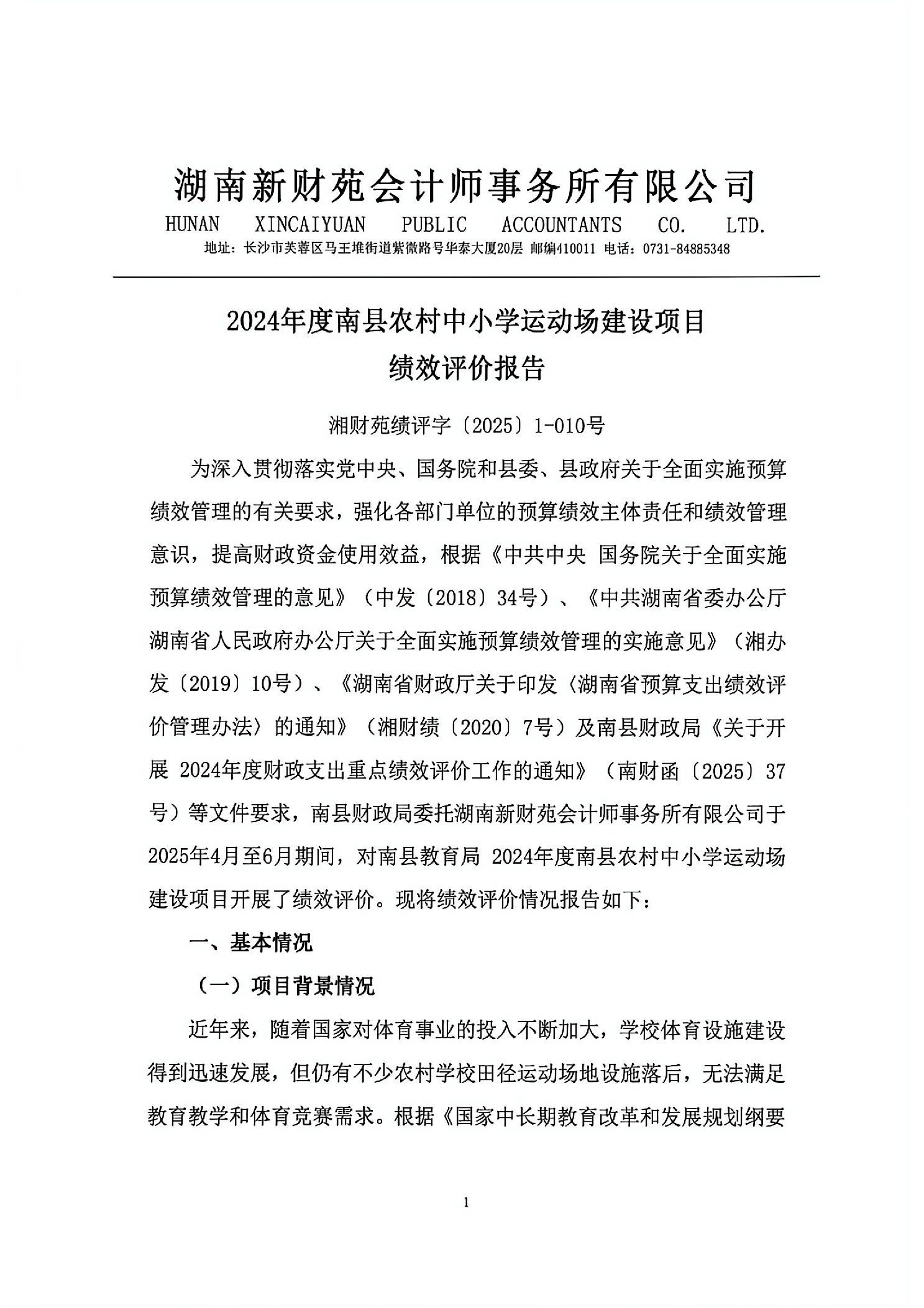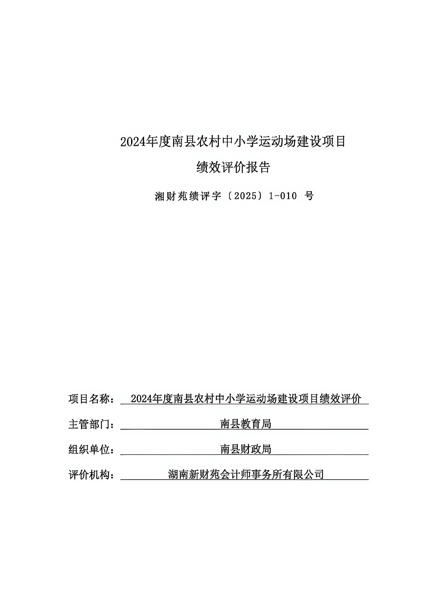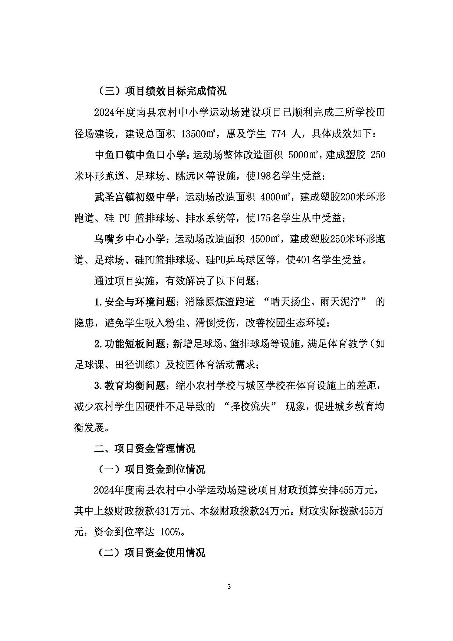2024年度南县农村中小学运动场建设项目绩效评价报告