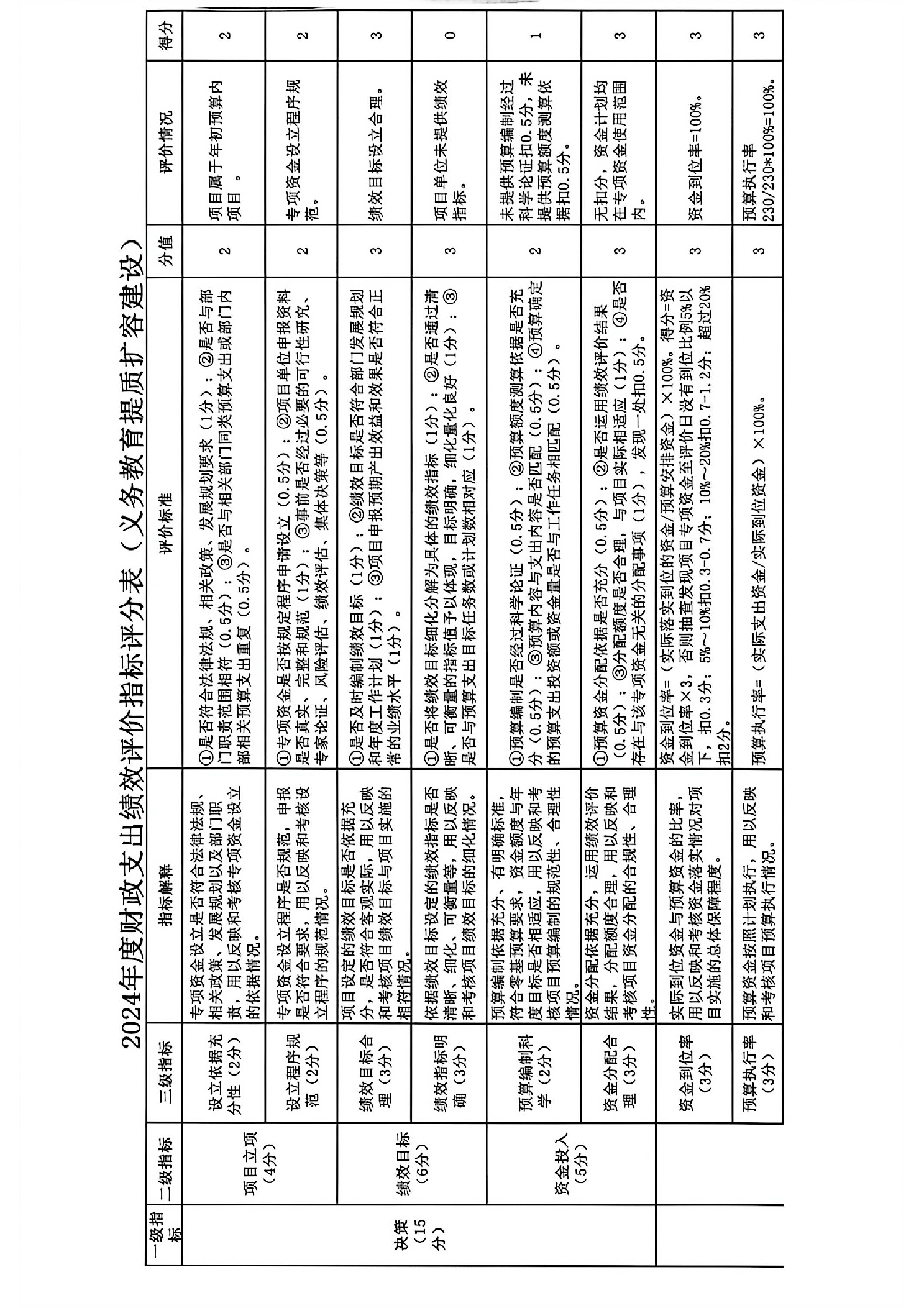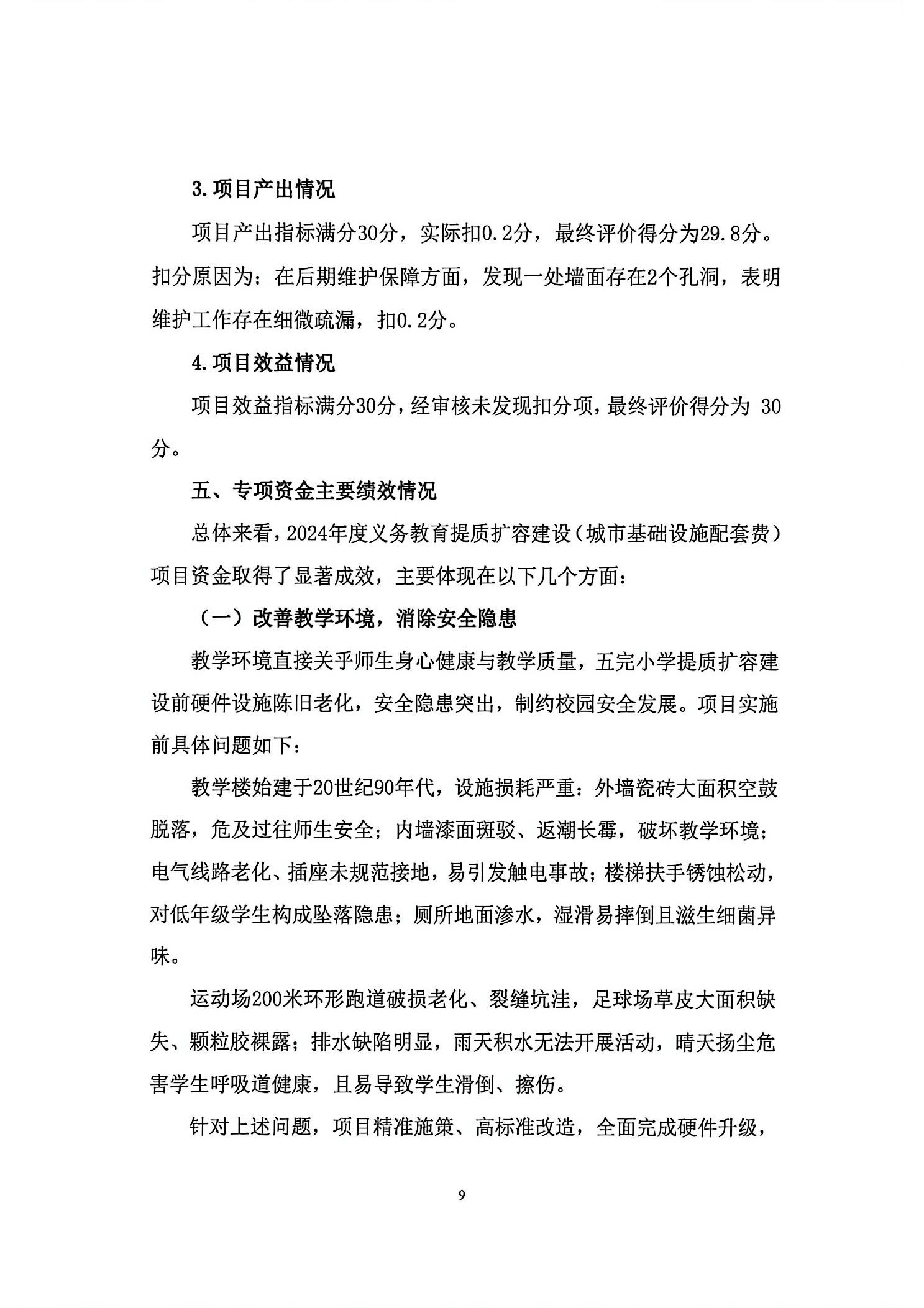 2024年度义务教育提质扩容建设(城市基础设施配套费)绩效评价报告