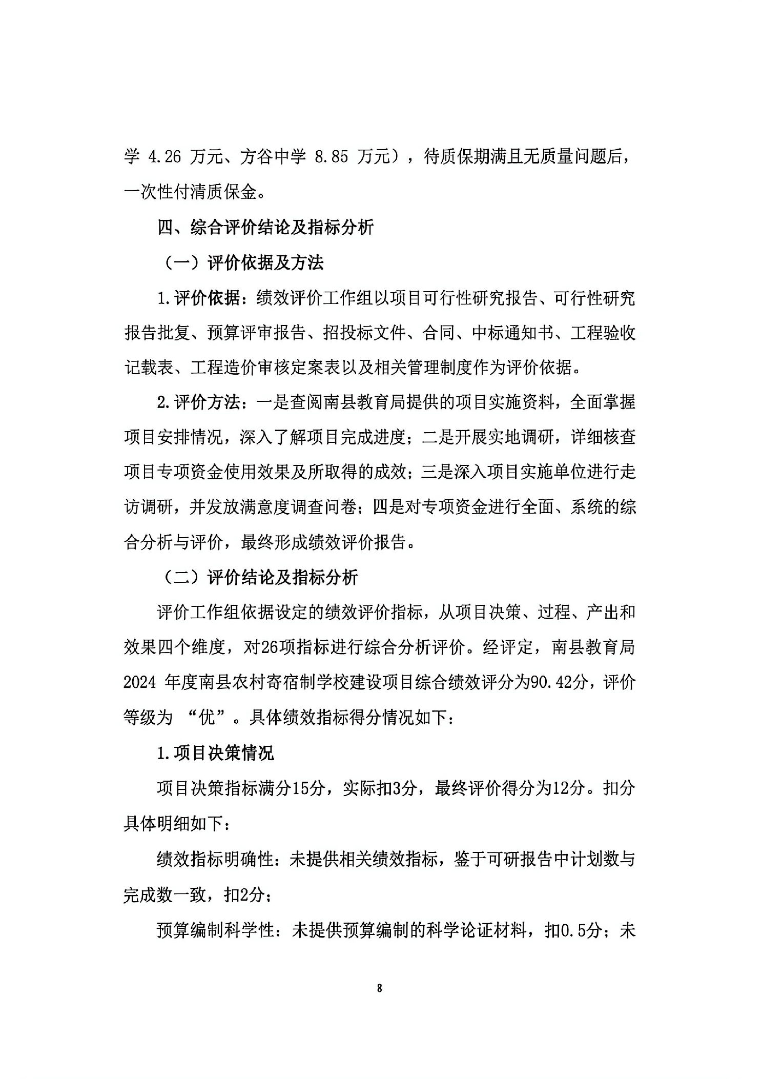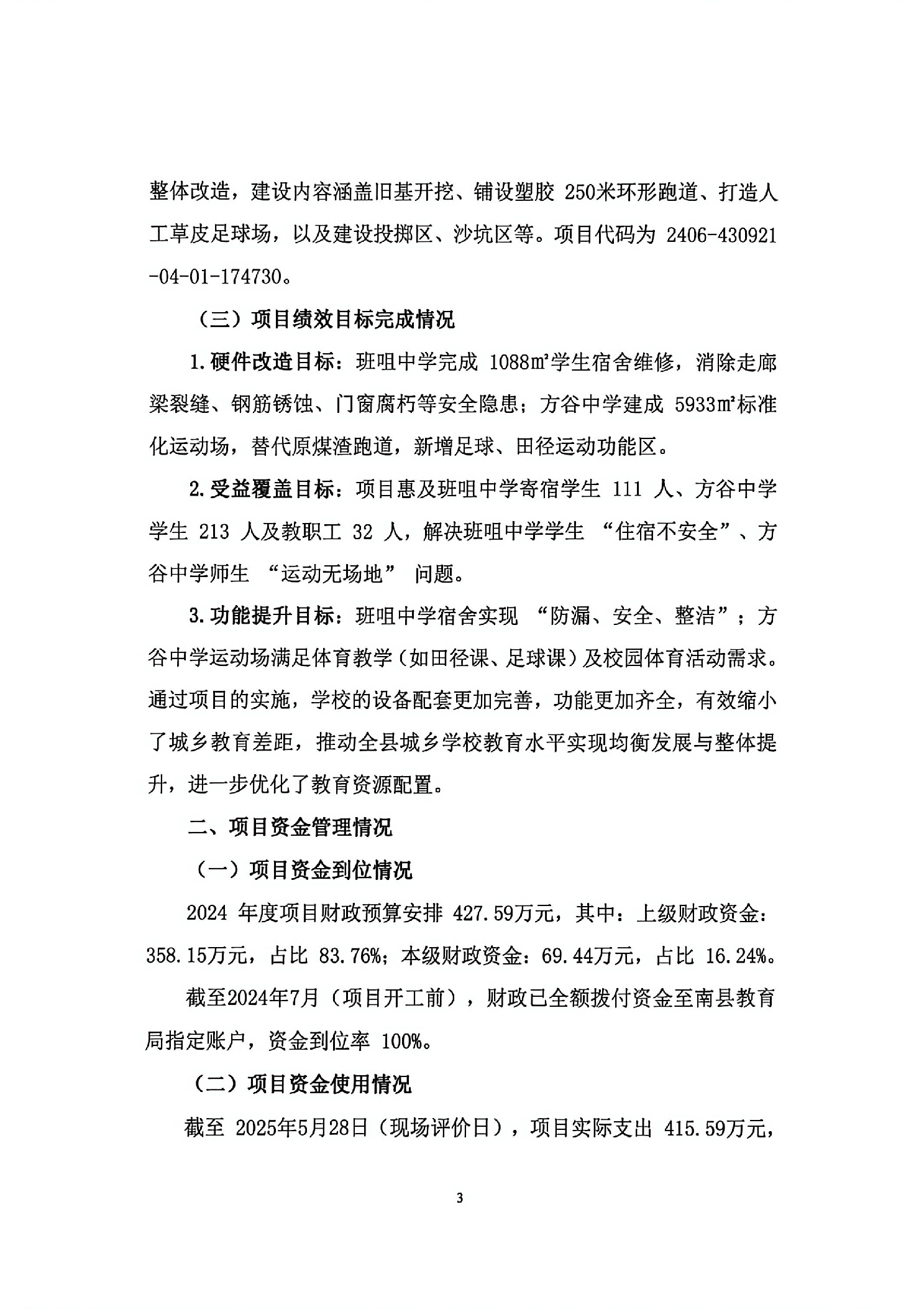 2024年度南县农村寄宿制学校建设项目绩效评价报告