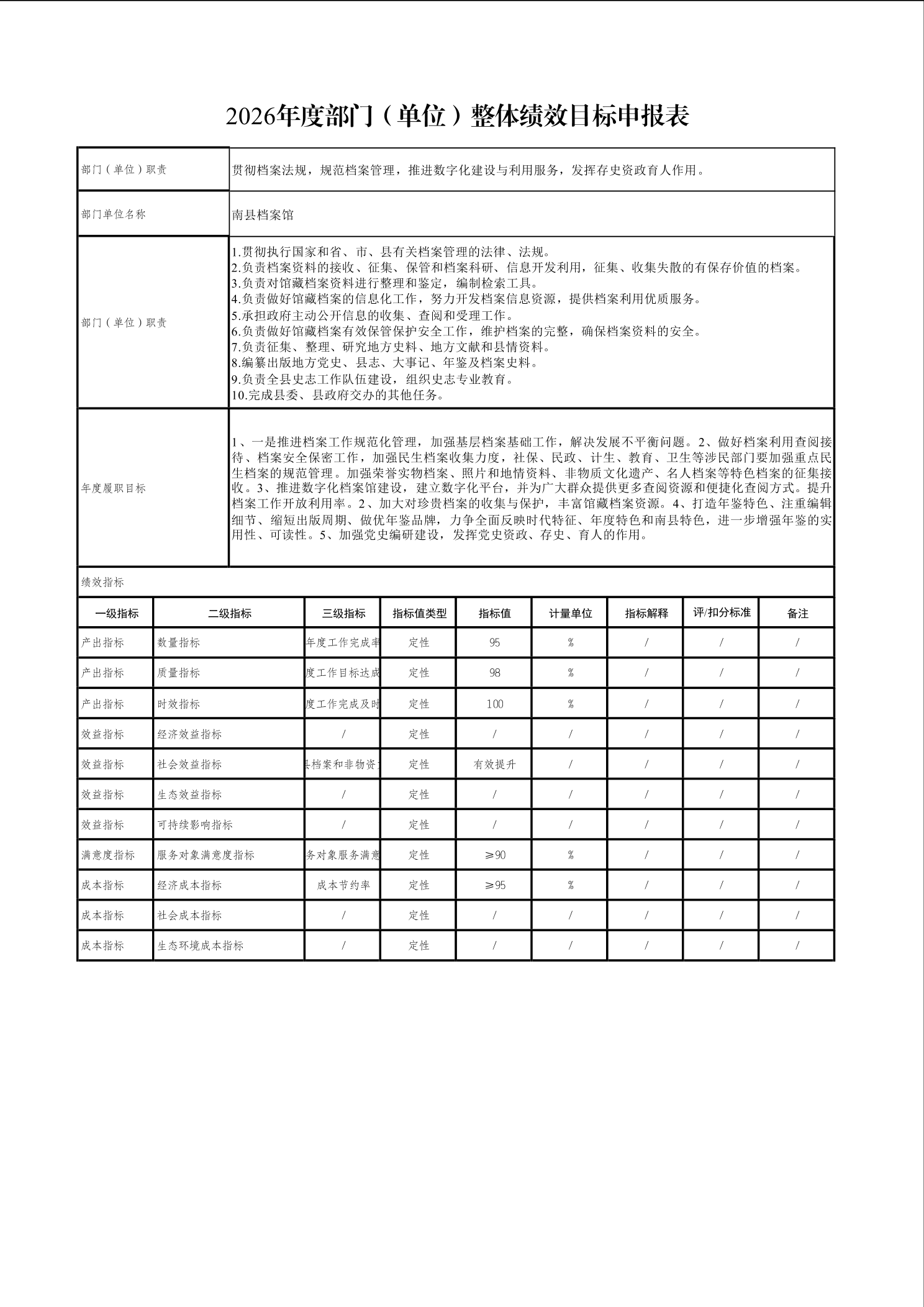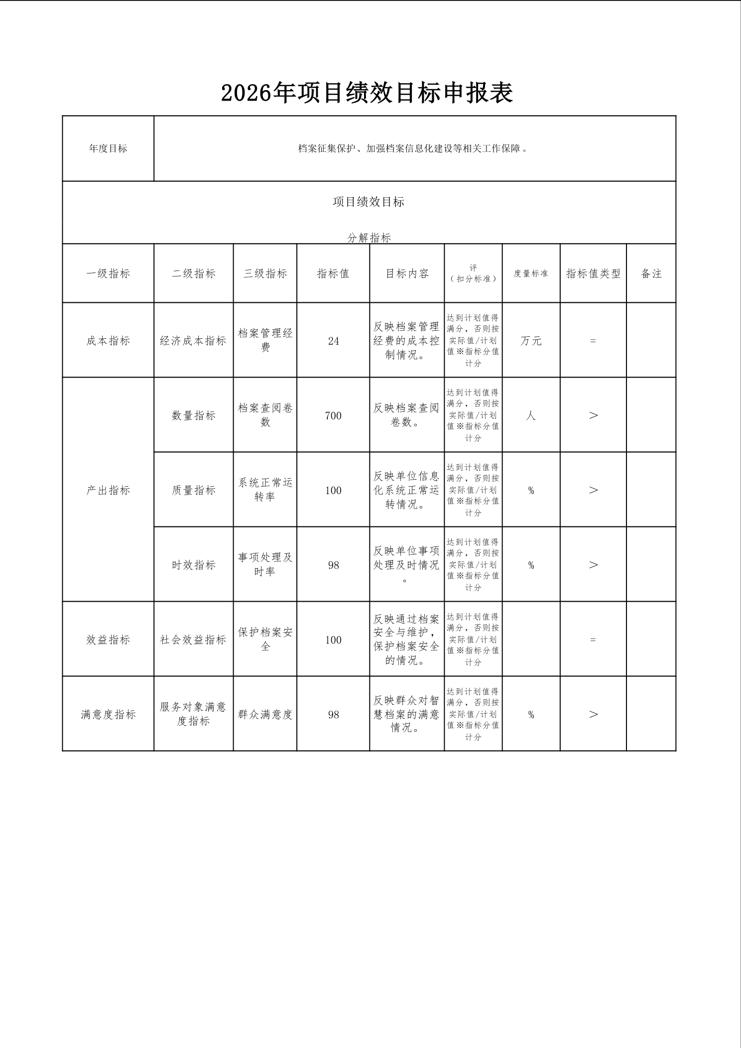 2026年项目绩效目标申报表