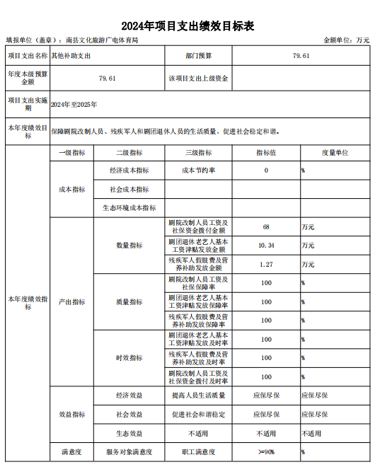 2024年南县文化旅游广电体育局项目支出绩效目标表