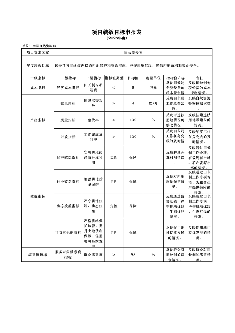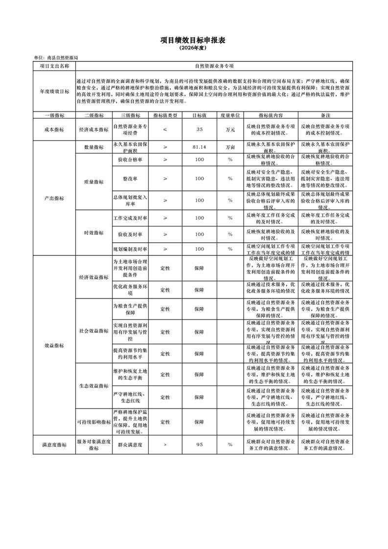 2026年度项目绩效目标申报表