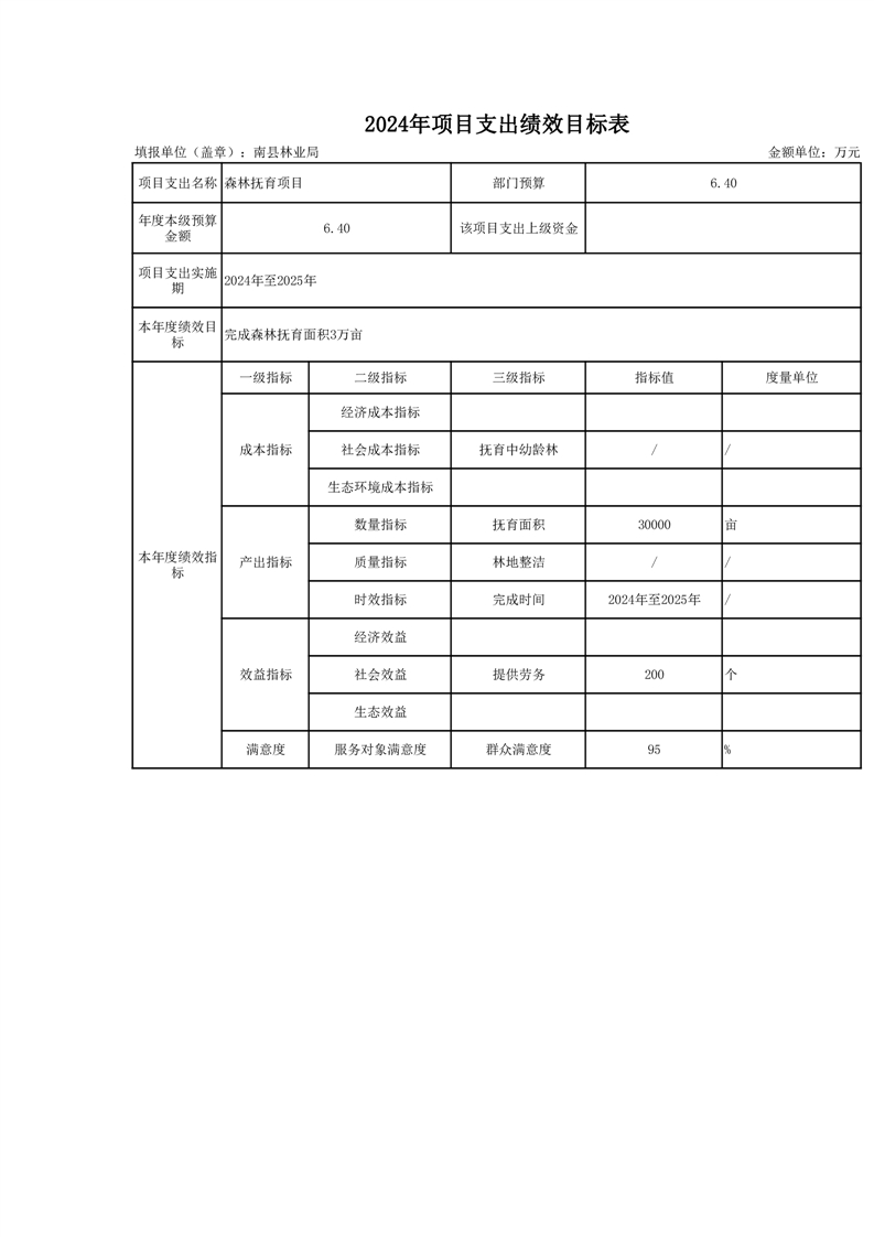南县林业局2024年整体绩效目标申报表和项目支出绩效目标表