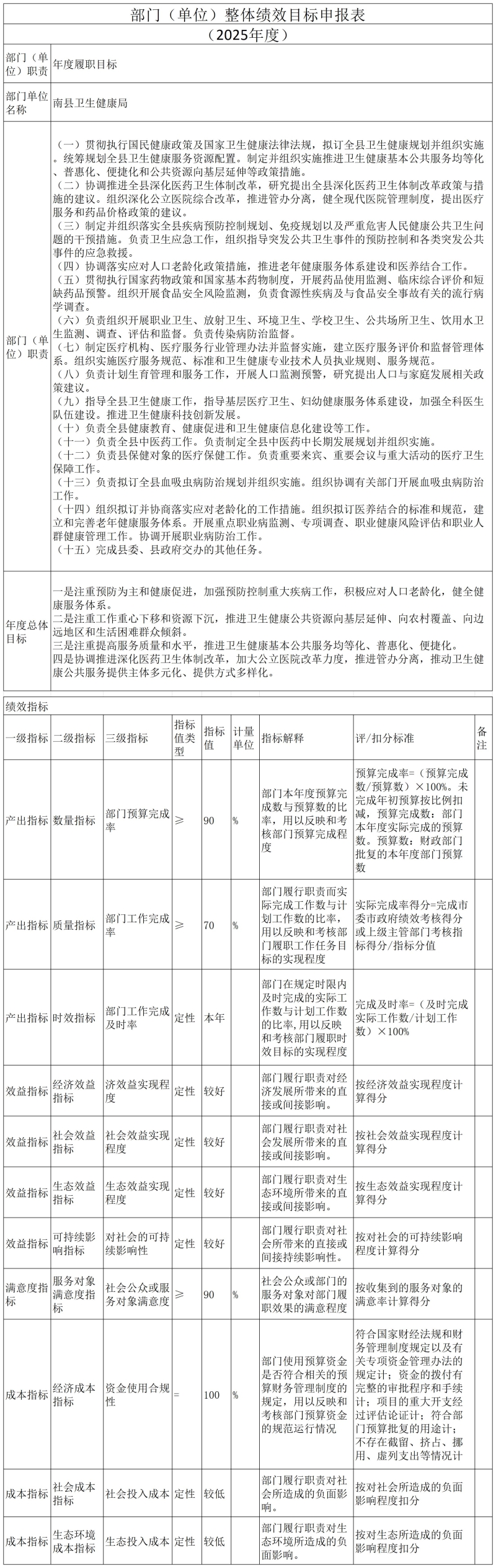 南县卫生健康局2025年部门整体绩效目标申报表