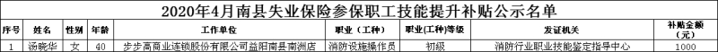 附件:2020年4月南县失业保险参保职工技能提升补贴公示名单