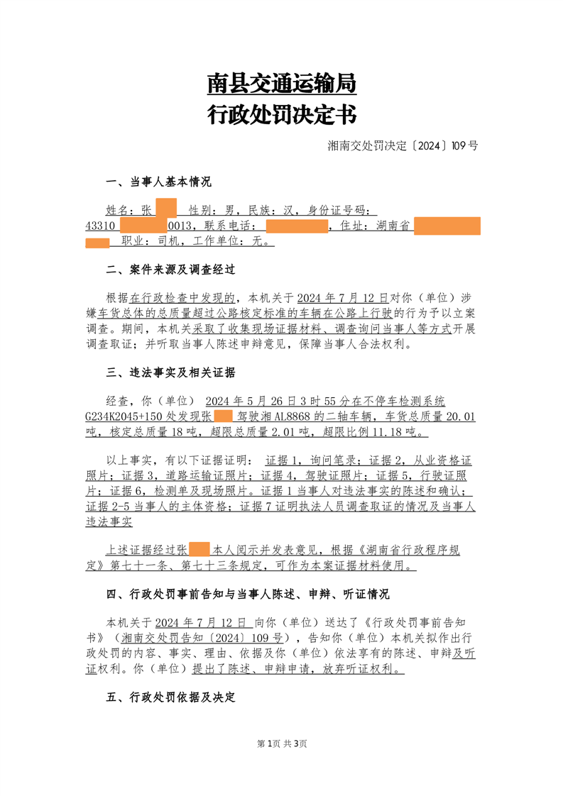 南县交通运输局行政处罚决定书湘南交处罚〔2024〕109号