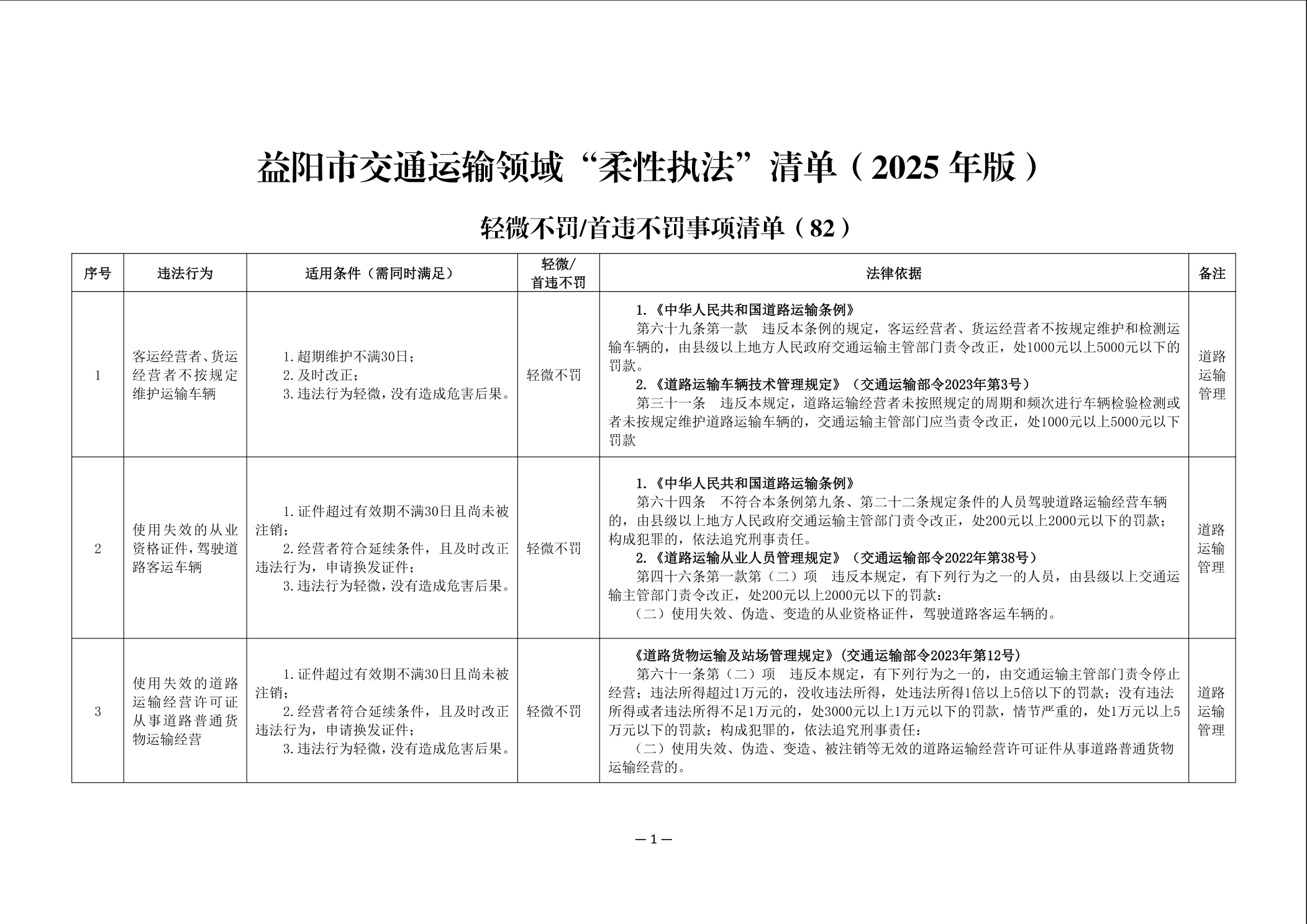 益阳市交通运输领域“柔性执法”清单(2025年版)