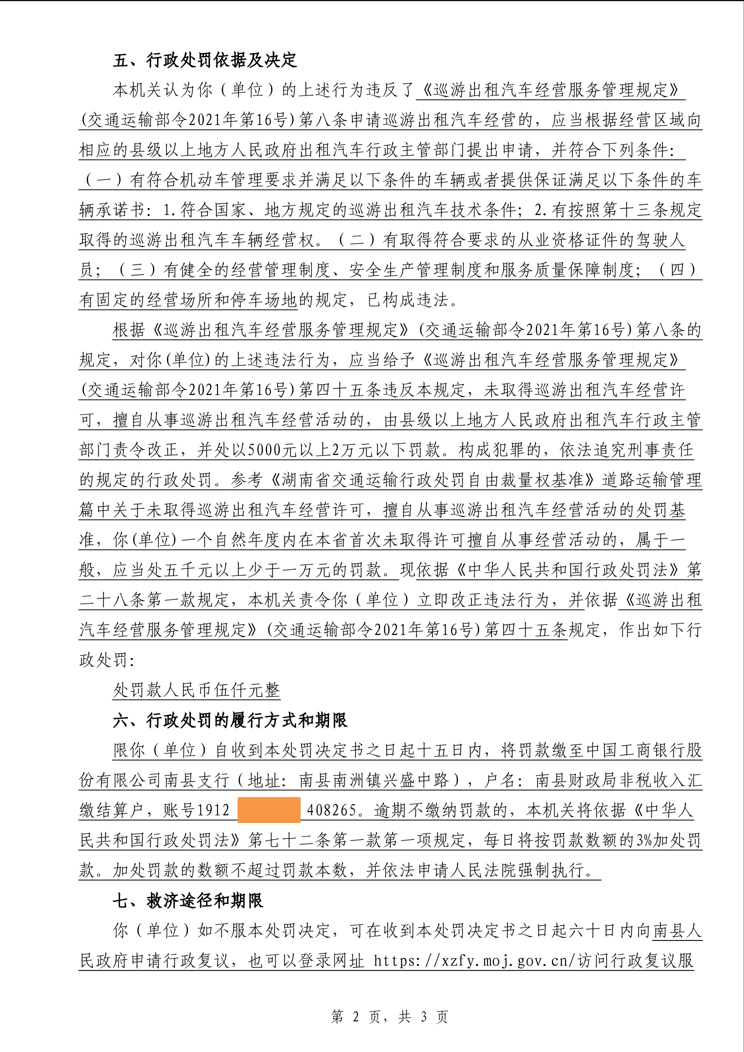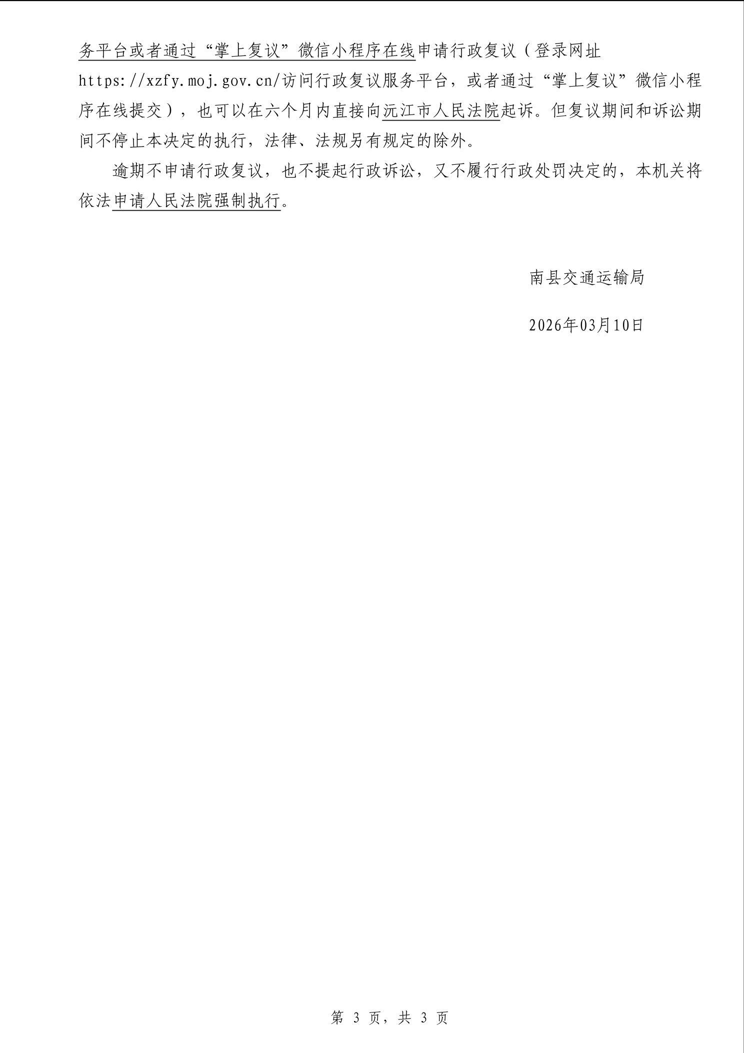 南县交通运输局行政处罚决定书南县交处罚(2026)000000002号