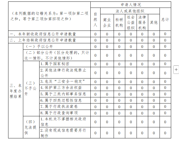 三、收到和处理政府信息公开申请情况