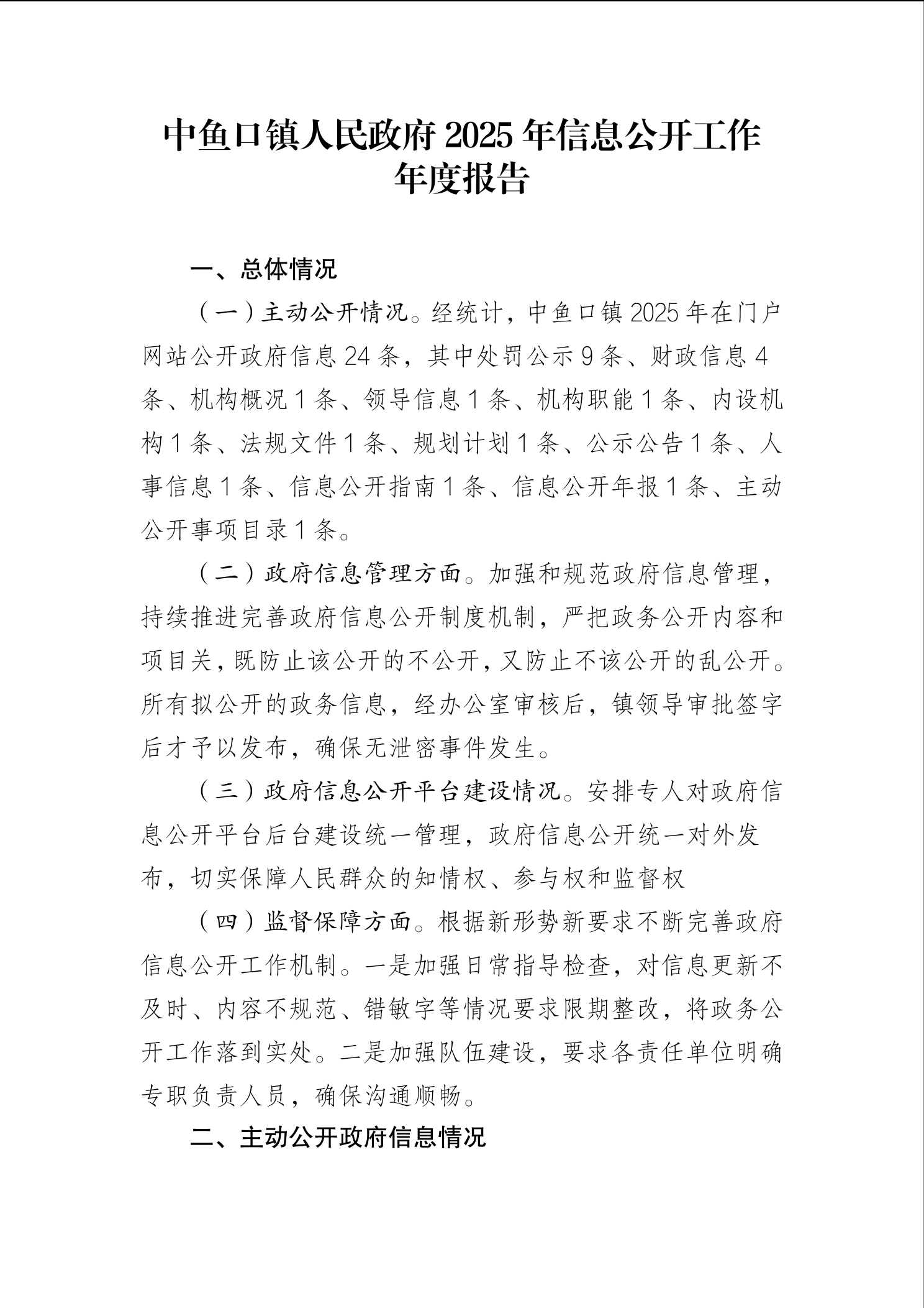 中鱼口镇人民政府2025年信息公开工作年度报告