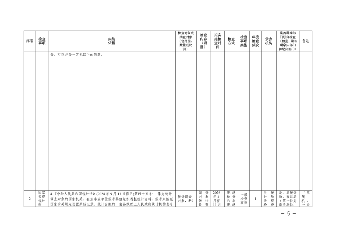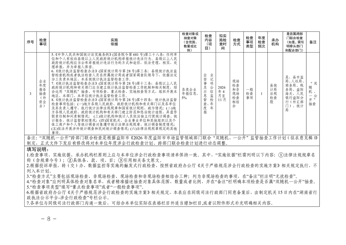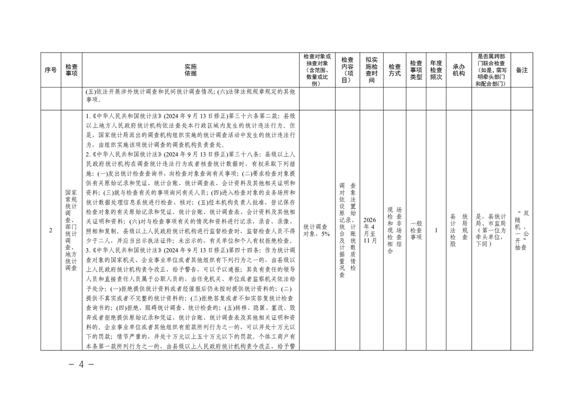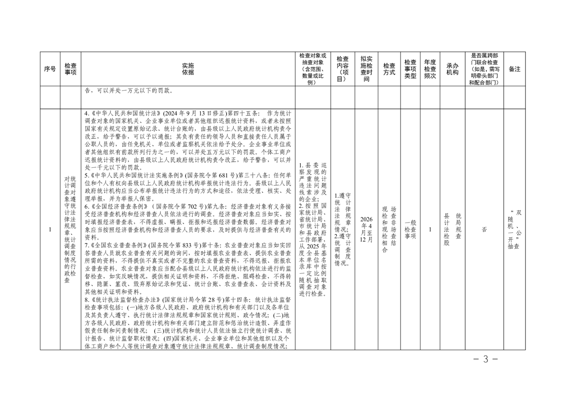 关于印发《南县统计局2026年度涉企行政检查计划》的通知