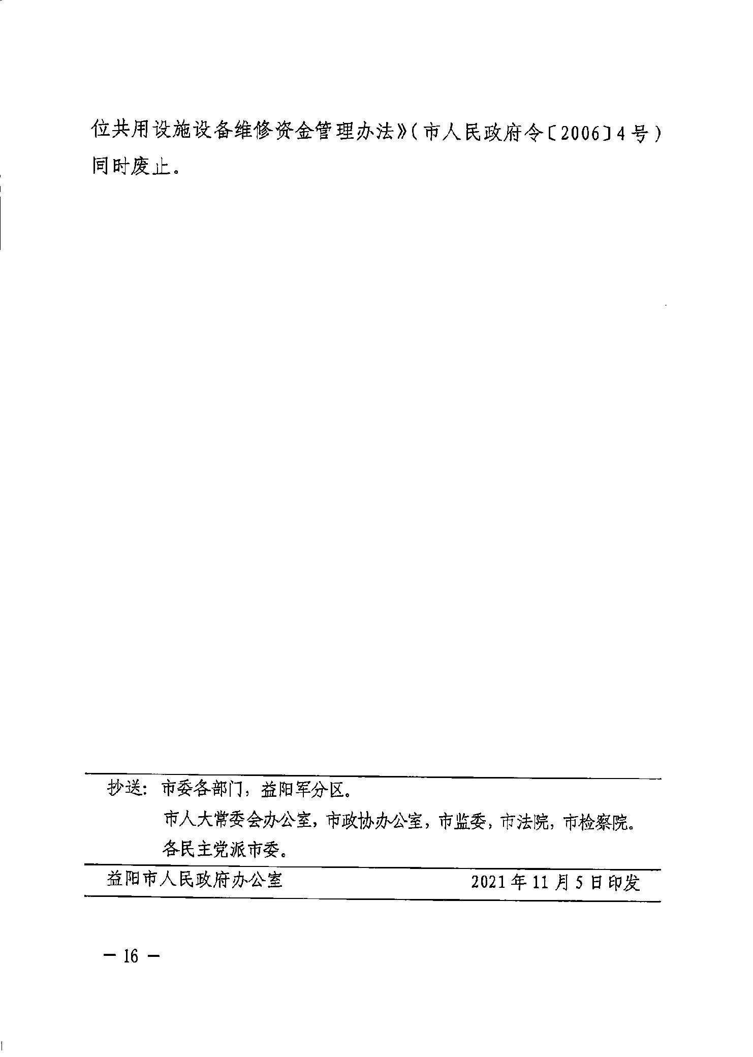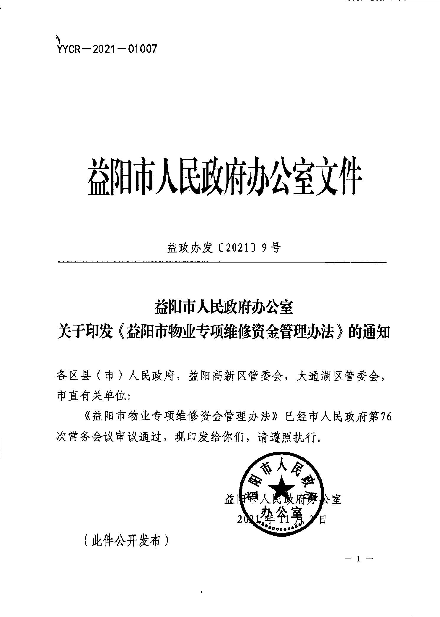 《益阳市物业专项维修资金管理办法》的通知 益政办发〔2021〕9号