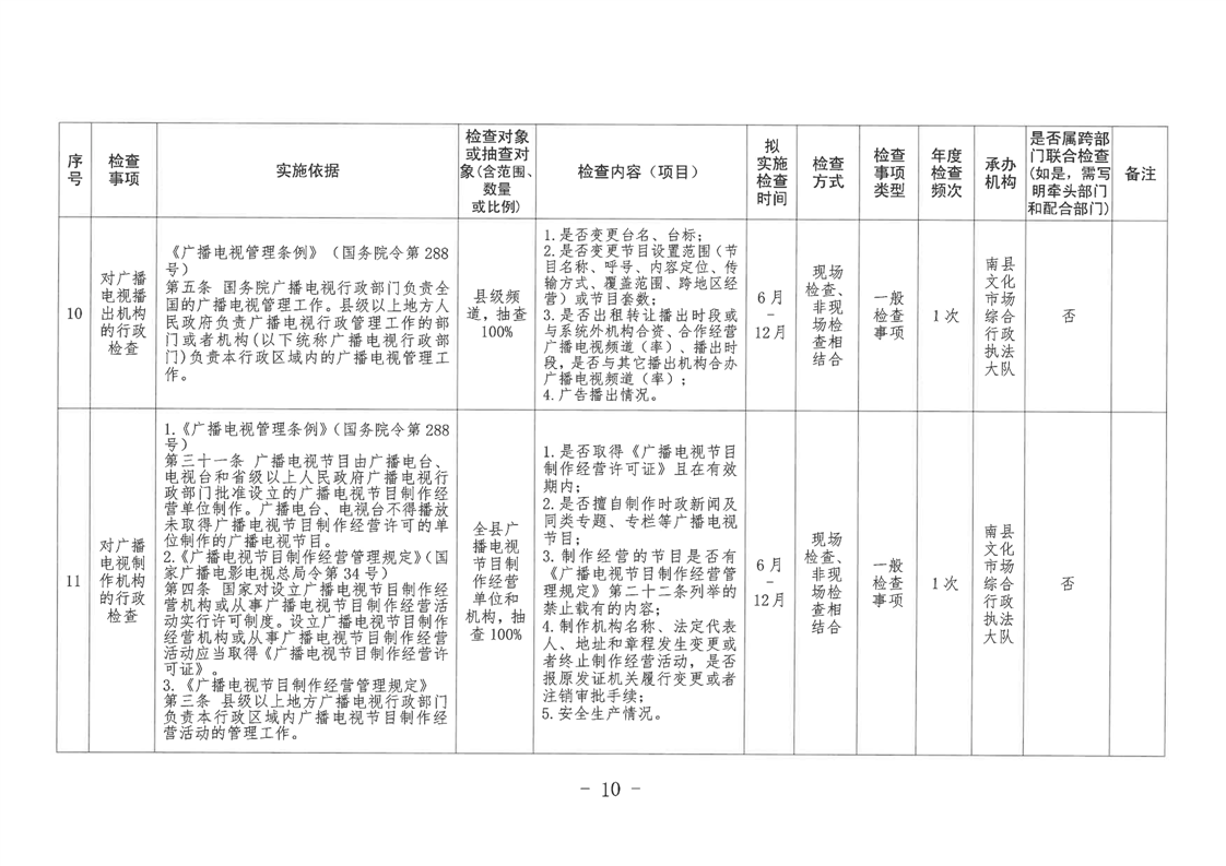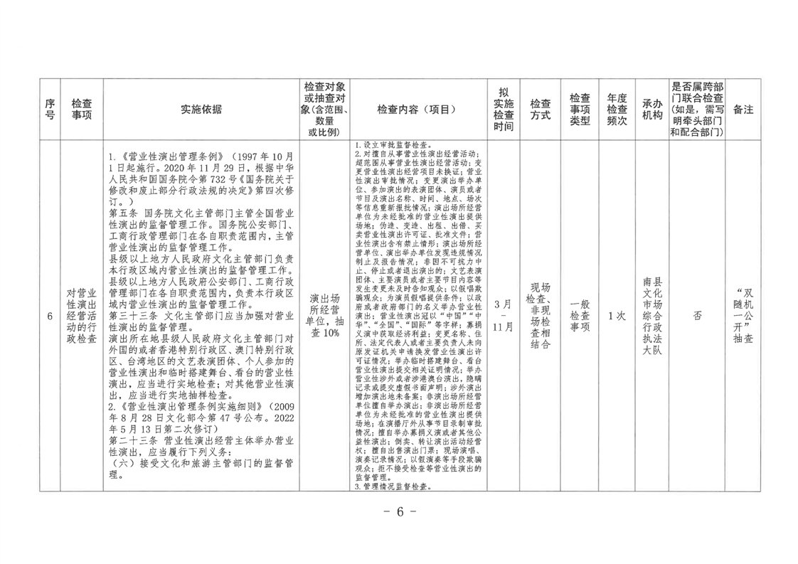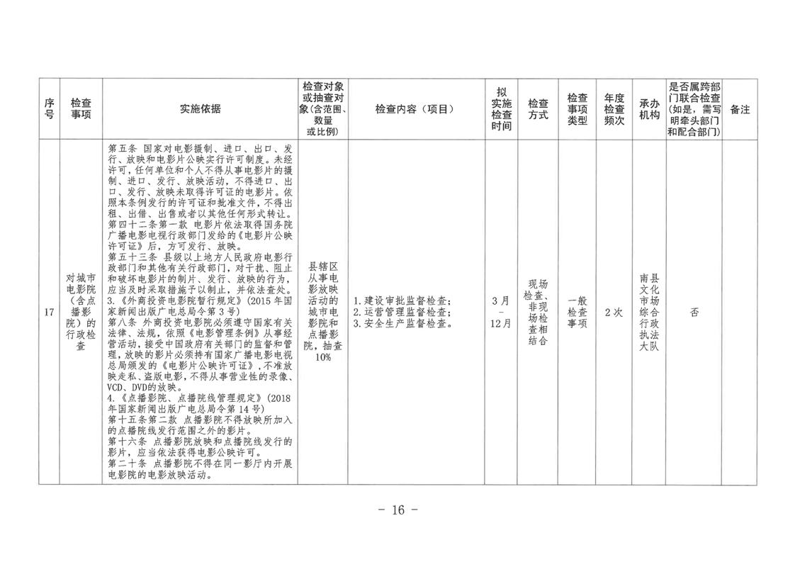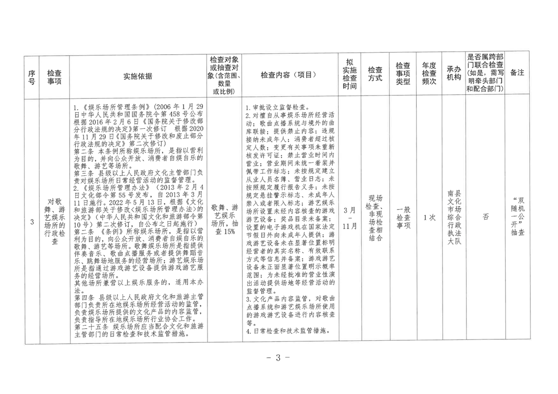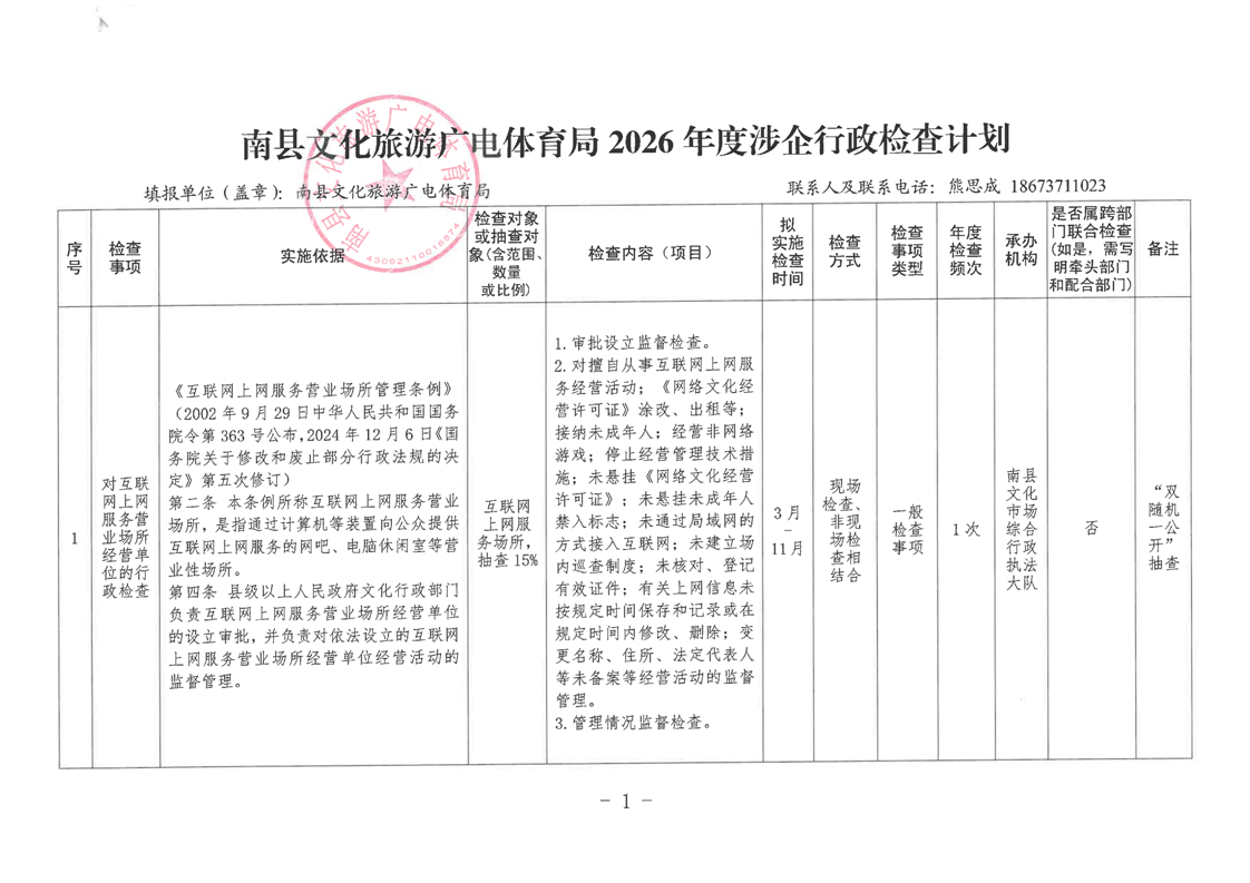 2026年度南县文化旅游广电体育局涉企行政查计划