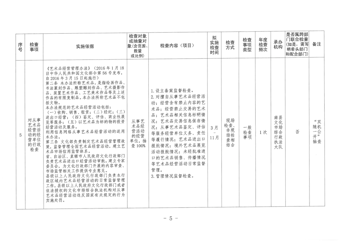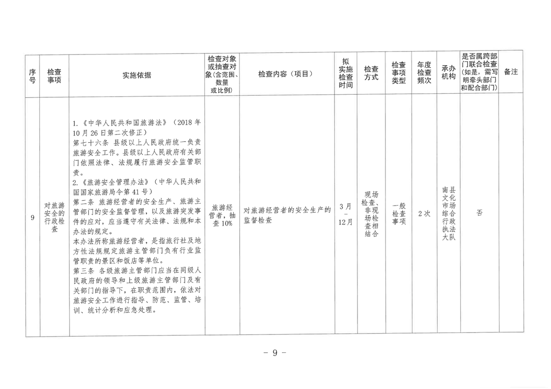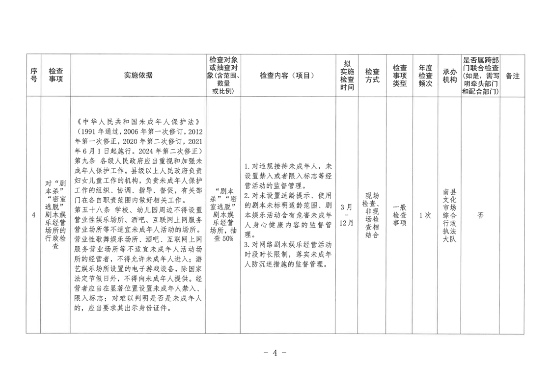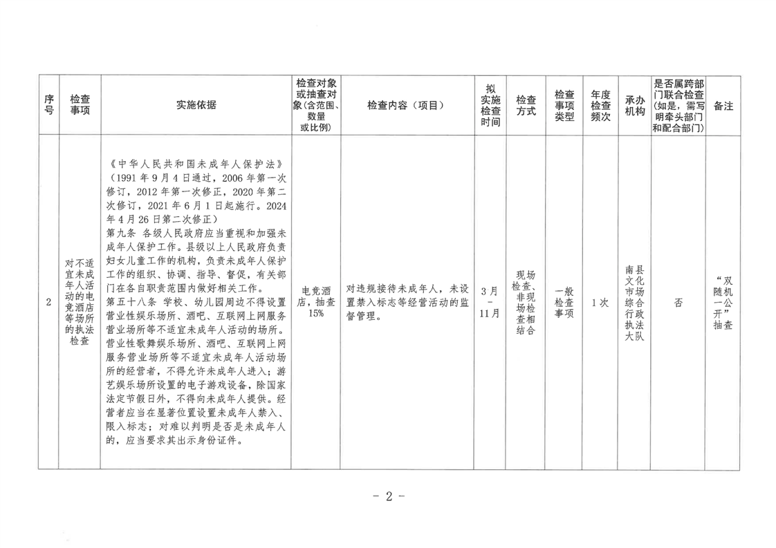 2026年度南县文化旅游广电体育局涉企行政查计划