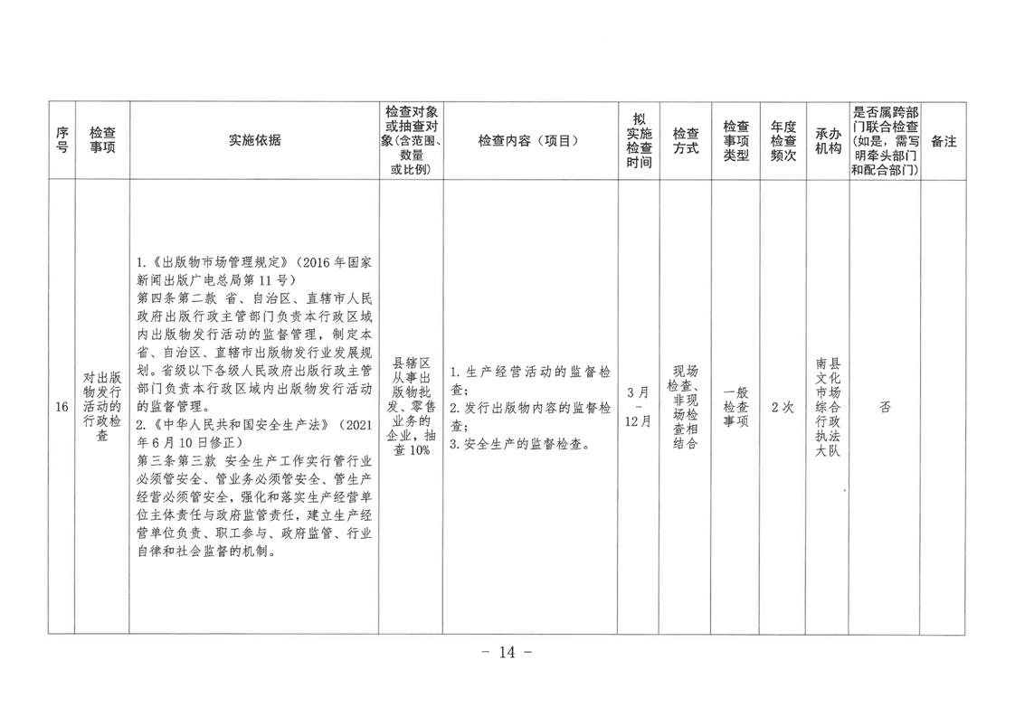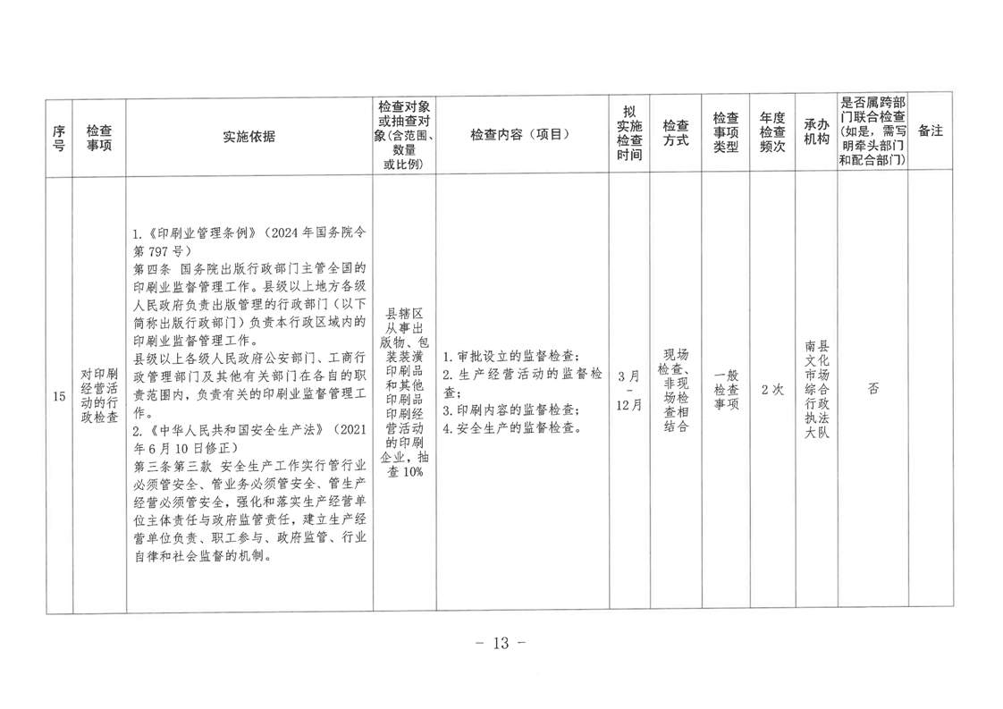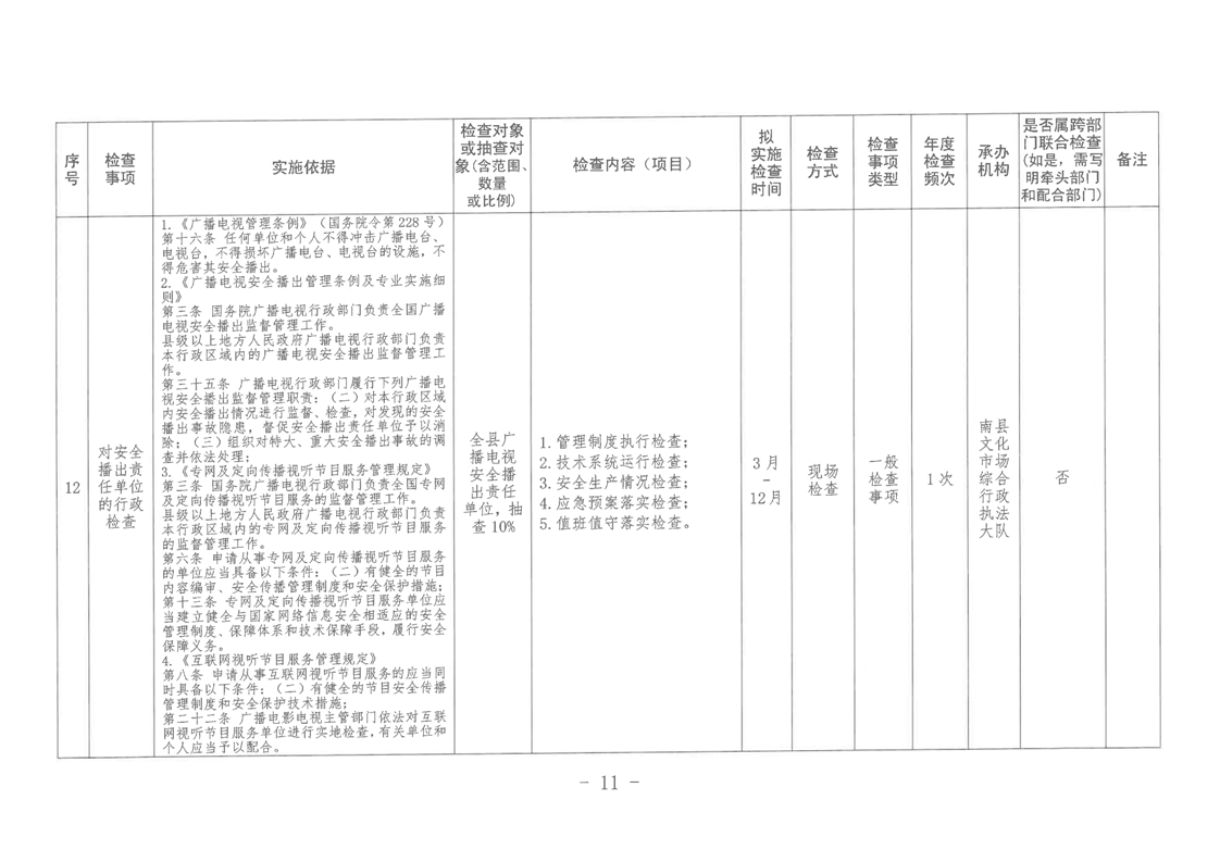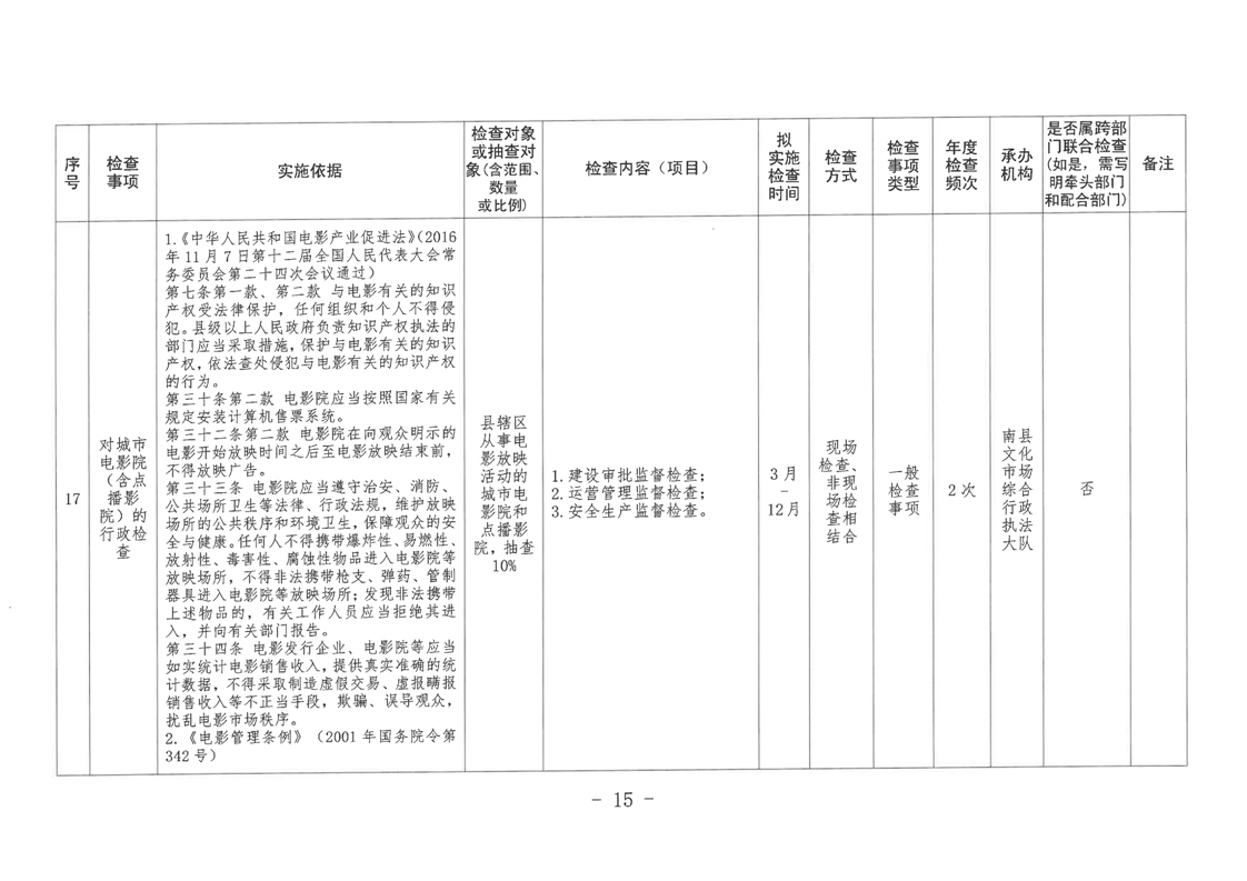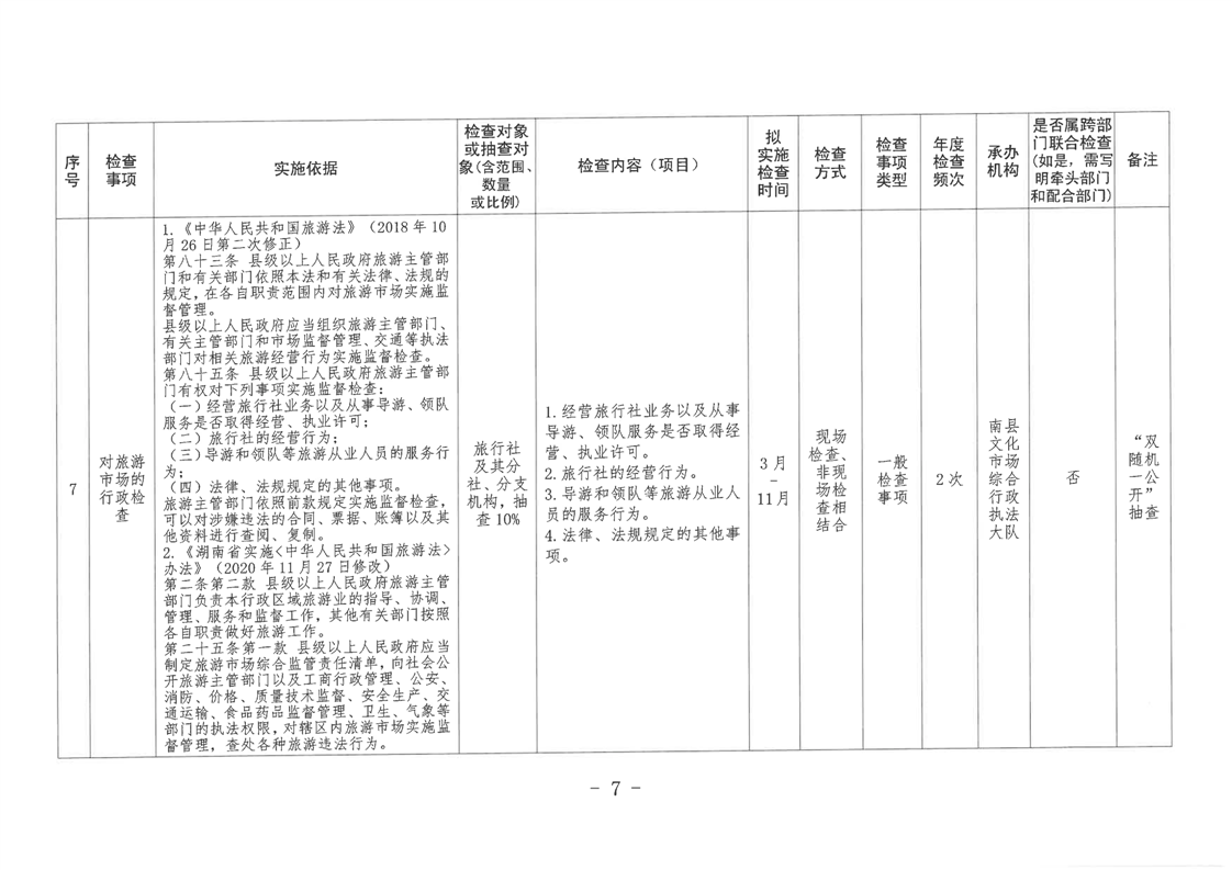 2026年度南县文化旅游广电体育局涉企行政查计划