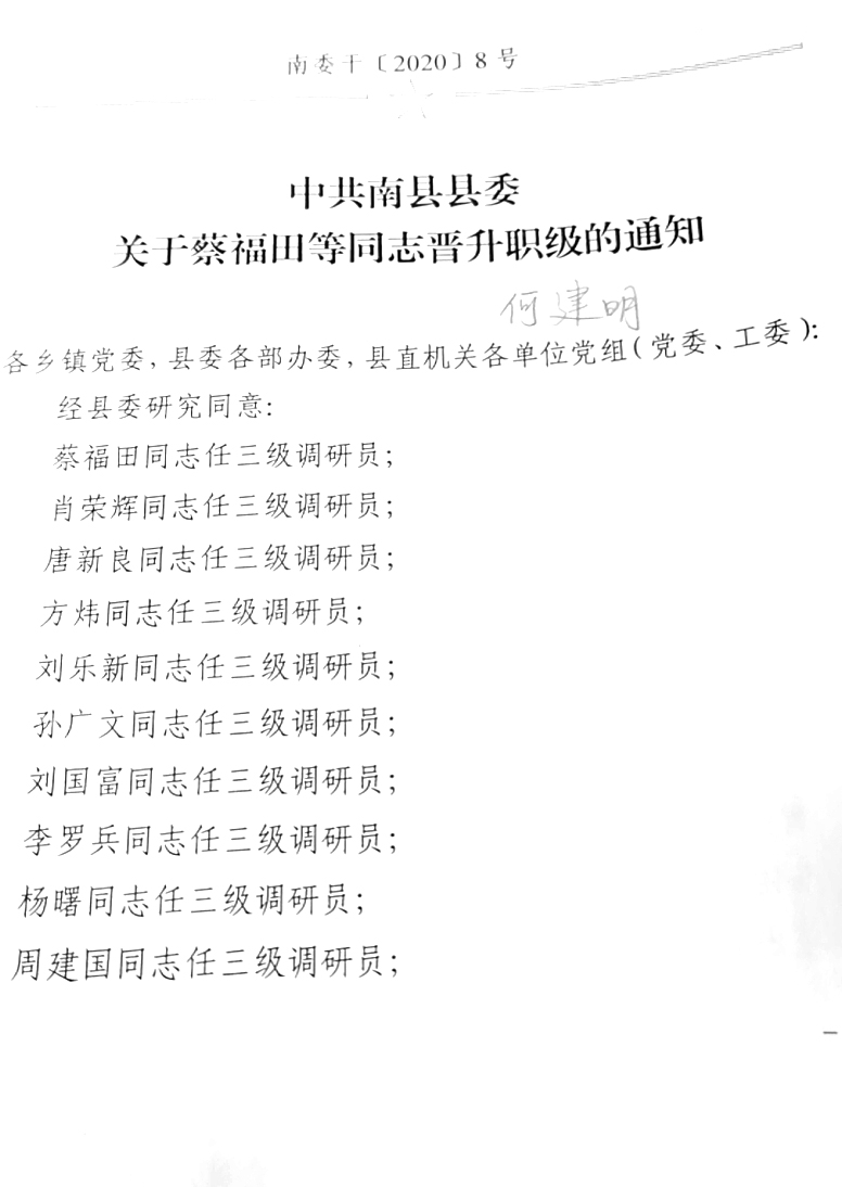 何建明晋升一级主任科员
