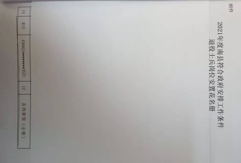 2021年南县档案馆接收1名退役士兵安置