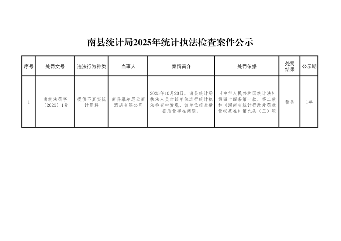 索引号 4309210010/2025-2131645 发布机构 南县统计局 发文日期 2025-11-28