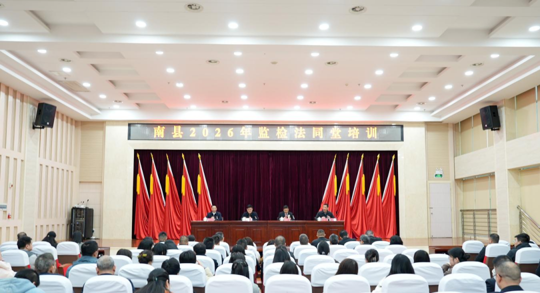 为深入贯彻习近平法治思想,加快构建贯通协同的监督体系、提升基层监督治理效能。3月18日,南县举办2026年监检法同堂培训班。县委常委、县纪委书记、县监委主任胡杰,县人民法院党组书记、院长丁杰,县人民检察院党组书记、检察长丁益良出席培训。