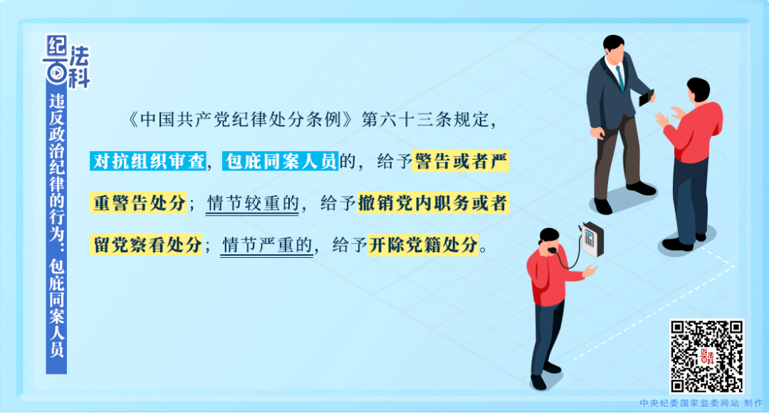 《中国共产党纪律处分条例》第六十三条规定,对抗组织审查,包庇同案人员的,给予警告或者严重警告处分;情节较重的,给予撤销党内职务或者留党察看处分;情节严重的,给予开除党籍处分。