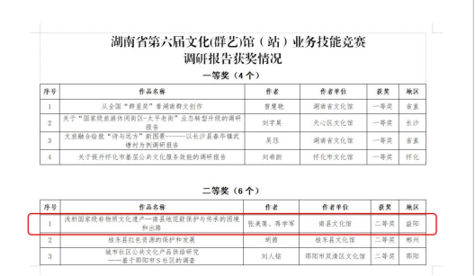 喜讯:南县文化馆参加我全省第六届文化(群艺)馆(站)业务技能竞赛中取得优异成绩!