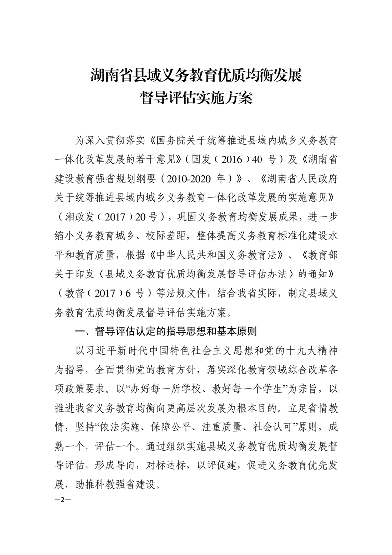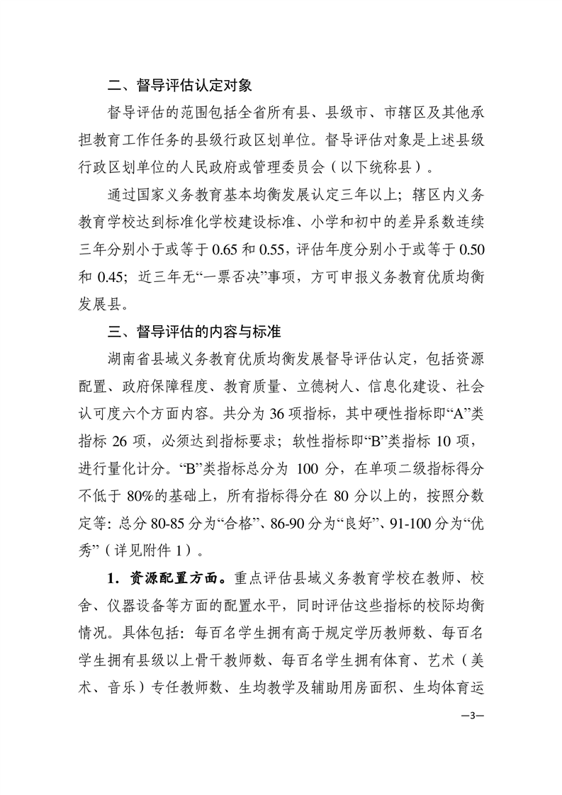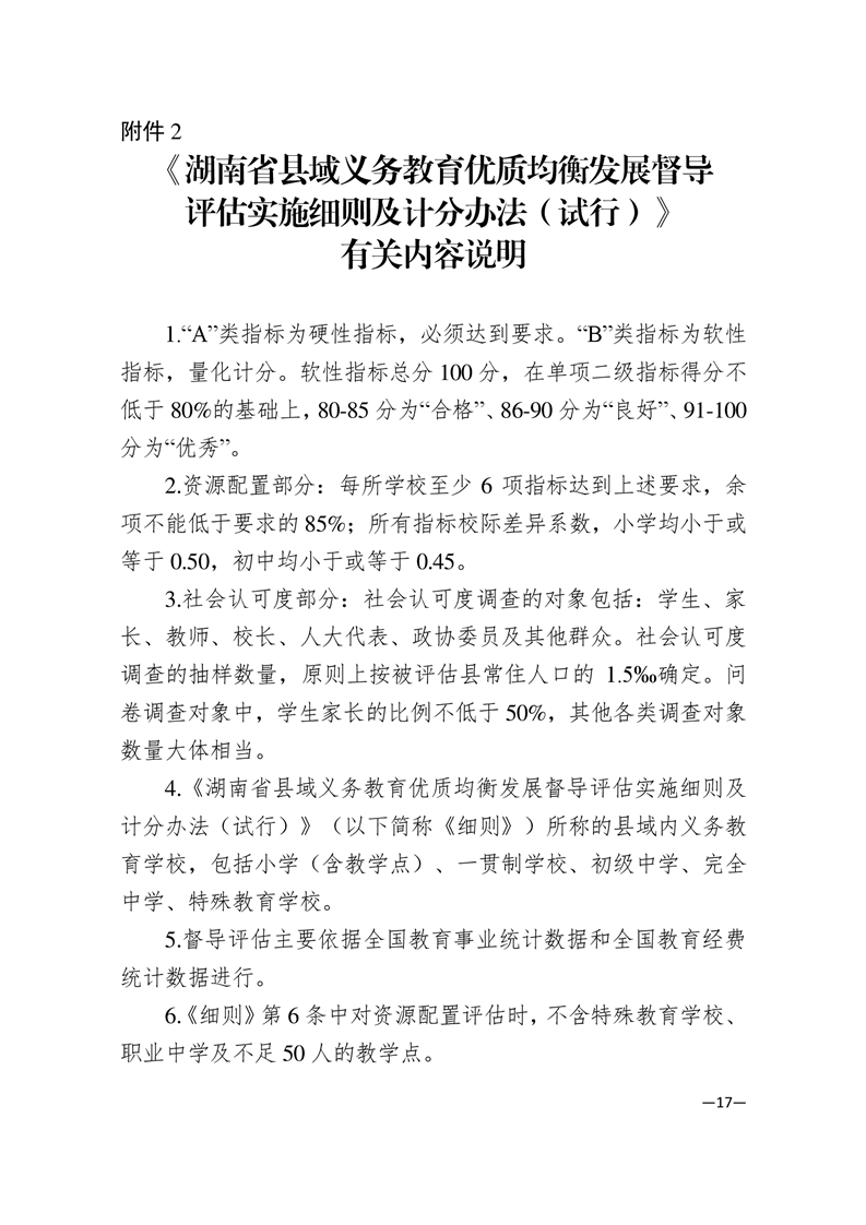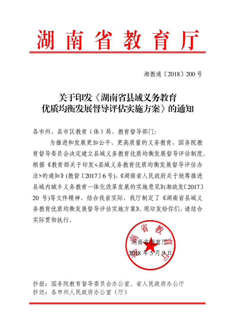 湖南省教育厅关于印发《湖南省县域义务教育优质均衡发展督导评估实施方案》的通知