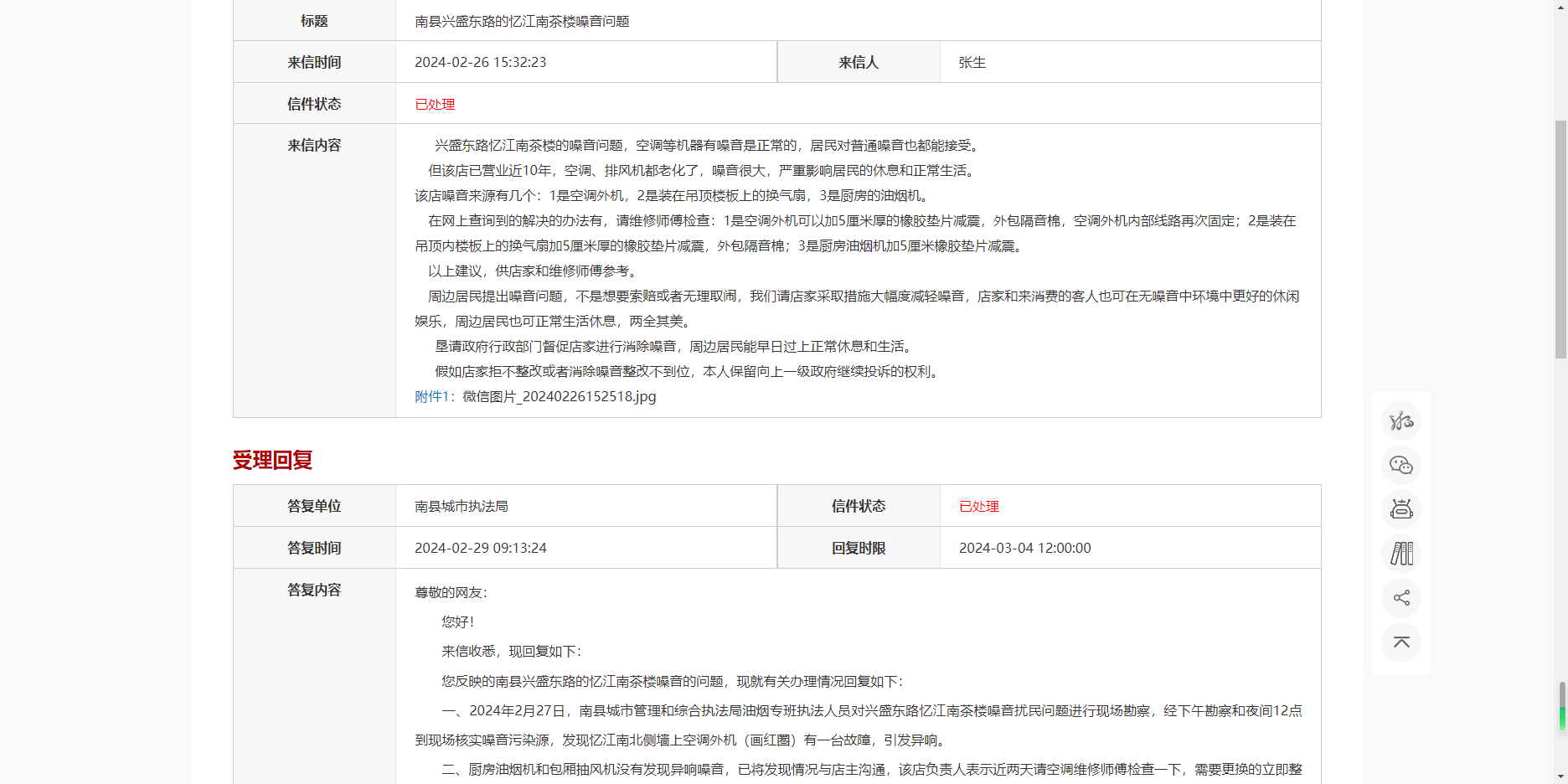 - 标题南县兴盛东路忆江南茶楼噪音未整改问题